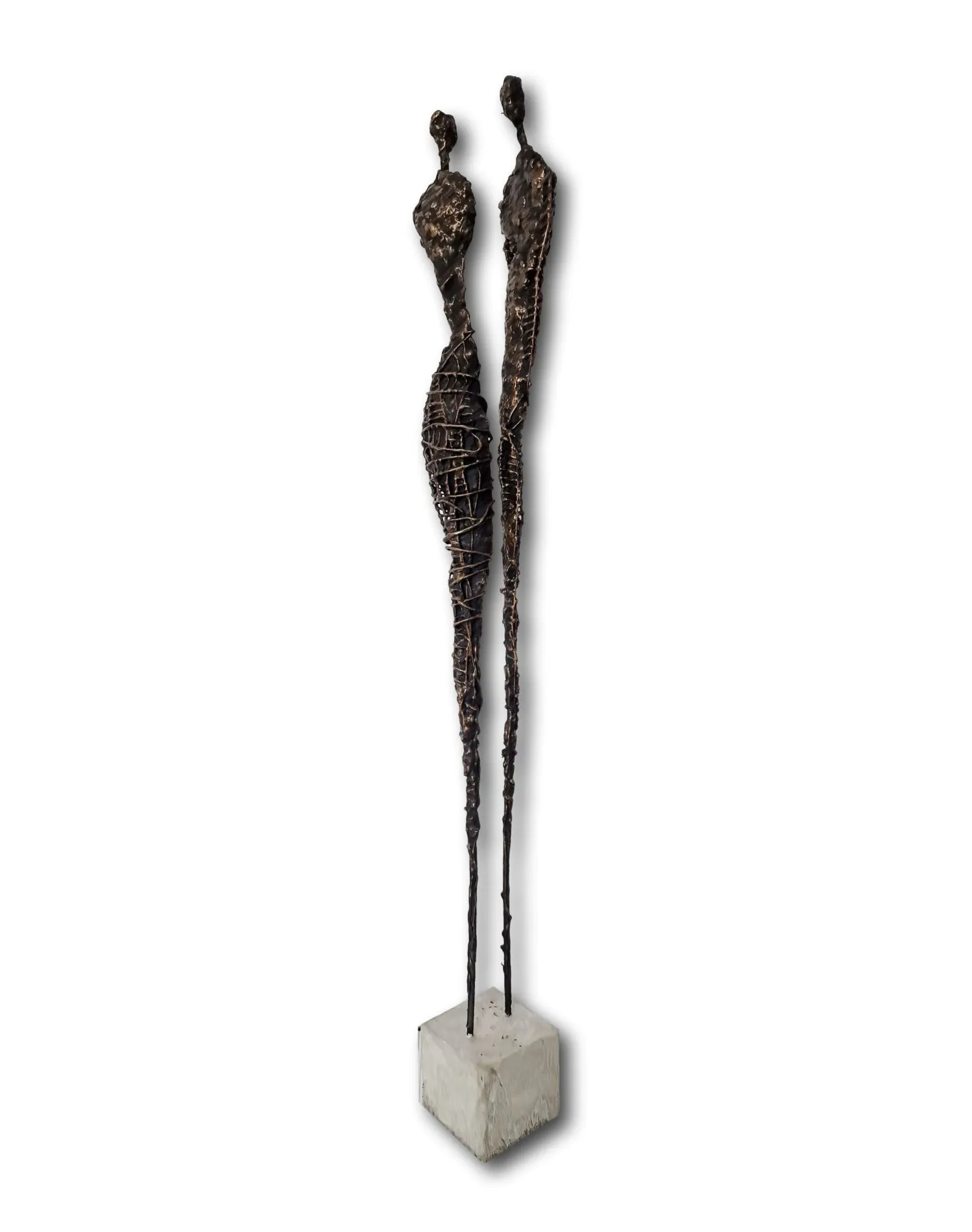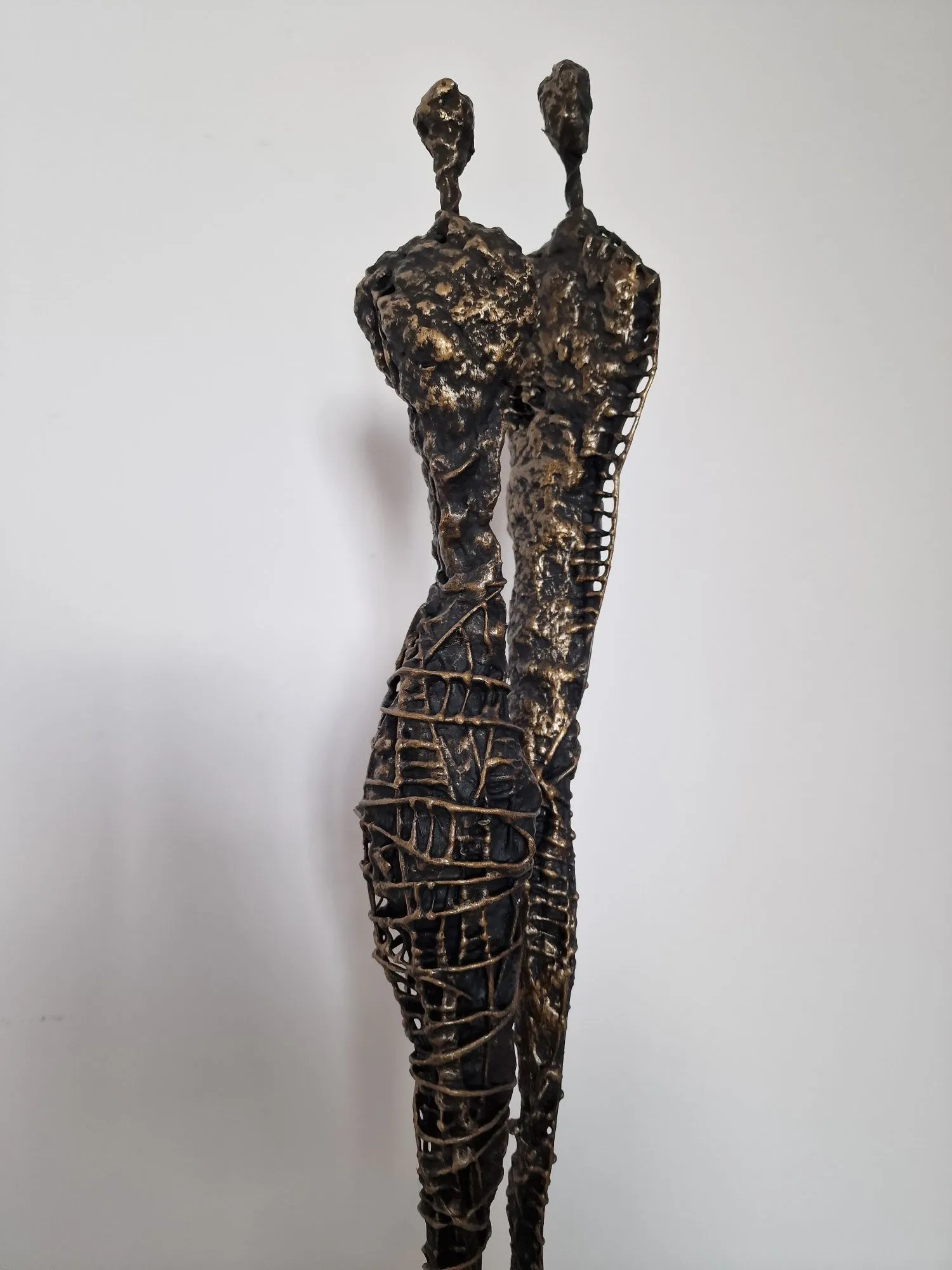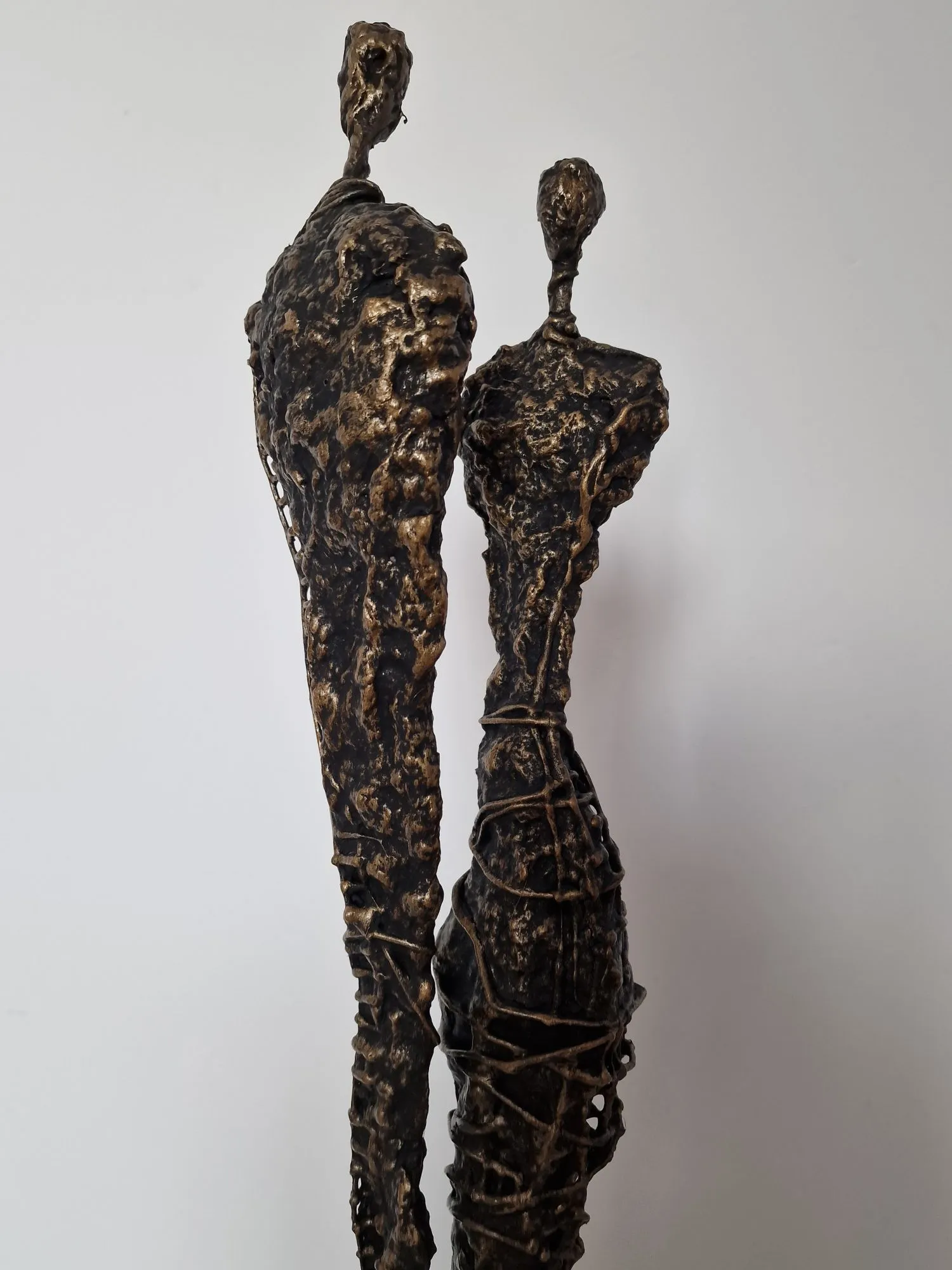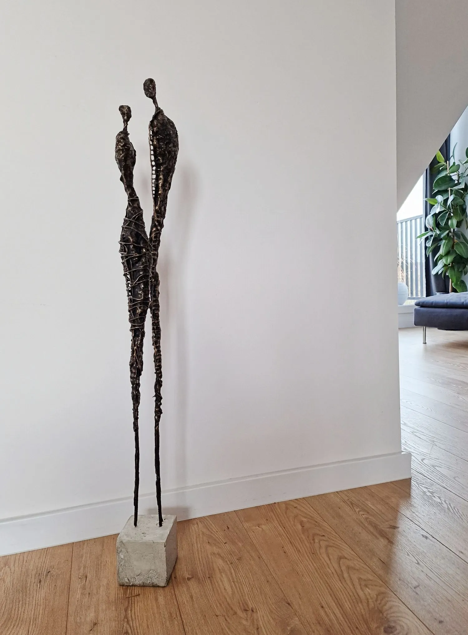 Inspiracją dla tego wyjątkowej rzeźby są obrazy i grafiki z mojej kolekcji Point od Balance. Zaczerpnięty z nich motyw kamiennych postaci, przeniesiony do formy przestrzennej, dodając rzeźbie głębi i znaczenia. Biomorficzne kształty rzeźby, nawiązujące do ludzkich sylwetek, wyrażają emocje i relacje, jakie łączą nas z innymi. Surowość materiałów została złagodzona przez plastyczność gliny i masy z sproszkowanego kamienia, tworząc harmonijną całość.