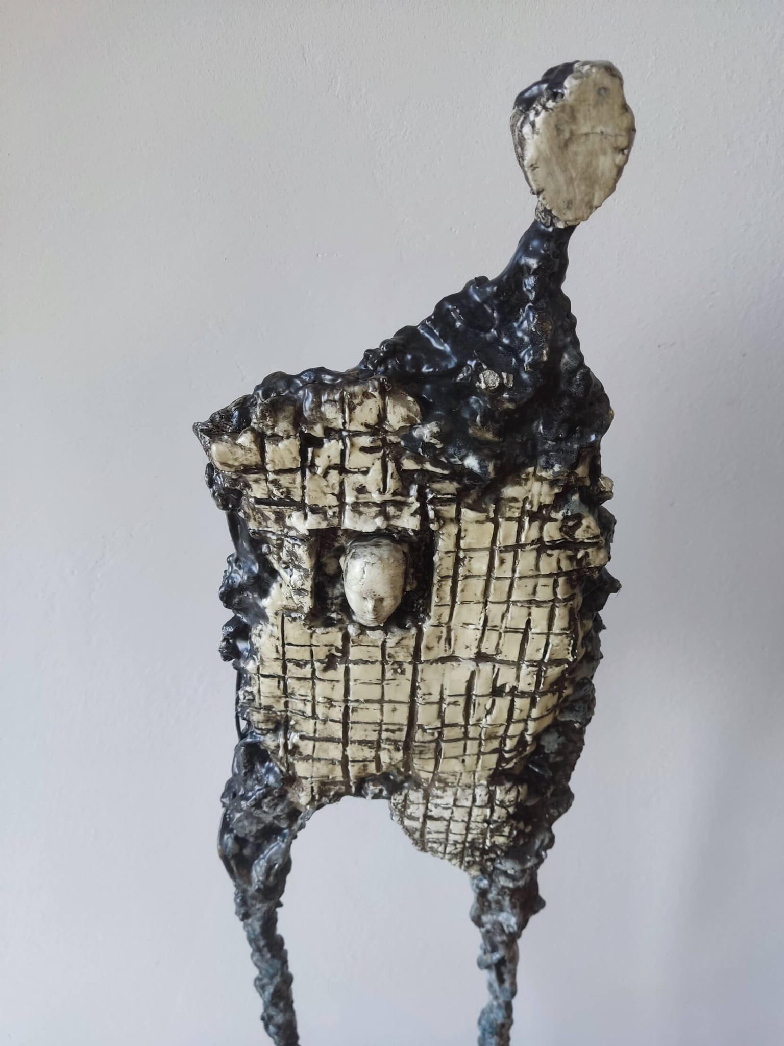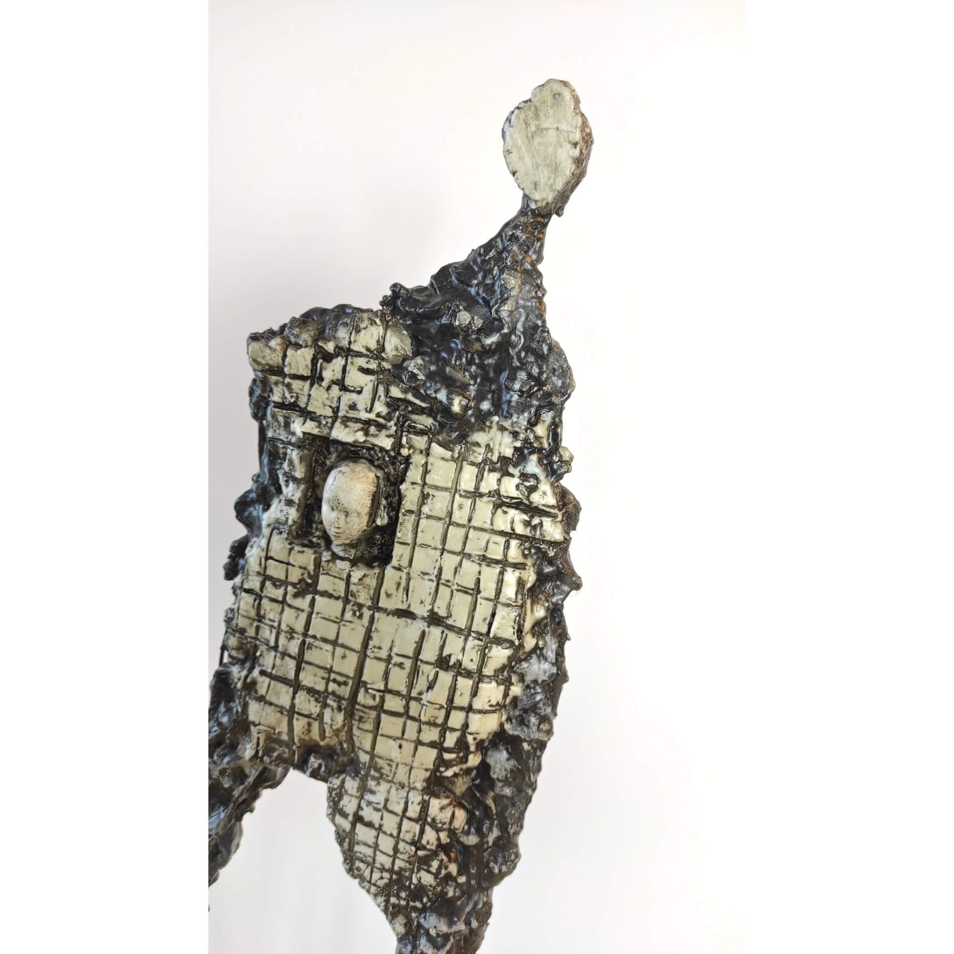 Widzący - nowoczesna rzeźba do salonu z gliny i stali - postać