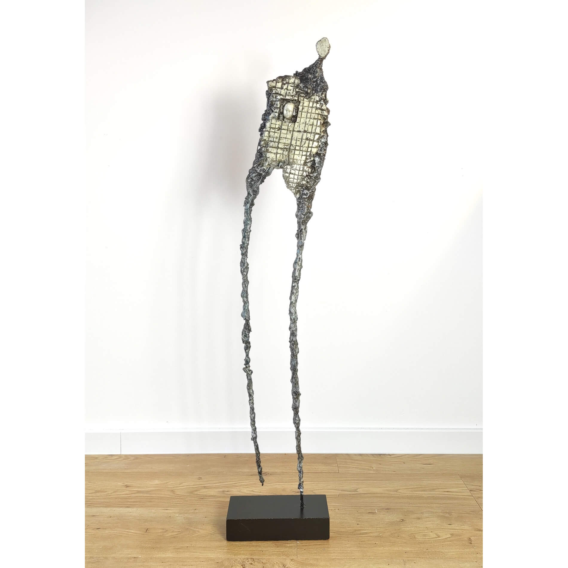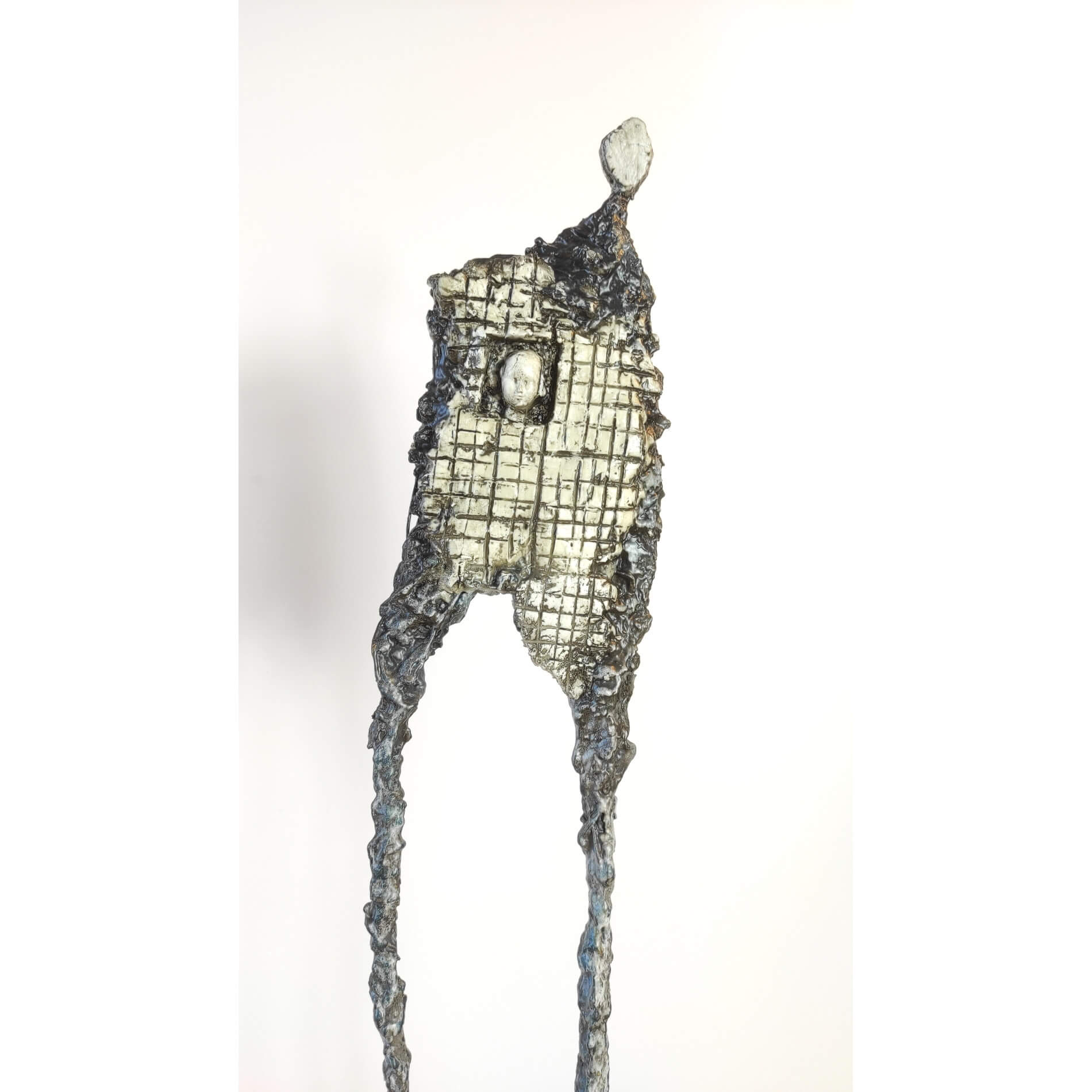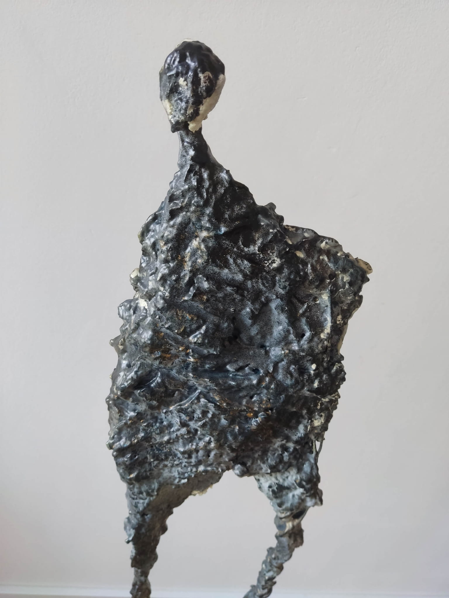Rzeźba została wykonana ze stali, gliny i sproszkowanego kamienia, osadzona na granitowym postumencie. Cykl rzeźb POSTAĆ nawiązuje do kolekcji obrazów i grafik Point od Balance. Motyw kamiennych postaci został przeniesiony do formy przestrzennej. Biomorficzne kształty nawiązujące do ludzkich sylwetek wyrażają emocje i relacje jakie dzielimy z innymi. Rzeźby mają nowoczesną formę, surowość materiałów z jakich zostały wykonane, łączenia i spawy łagodzi plastyczność gliny i masy z sproszkowanego kamienia. Użyta kolorystyka uwydatnia charakter rzeźby. Delikatny połysk został częściowo zmatowiony patyną, która nadaje całości szlachetność. Rzeźby z cyklu Postać są niezwykle osobliwe również ze względu na efekt jaki wywołują oglądane z bliska, z uwagi na bogactwo szczegółów i detale kolorystyczne. Forma i design rzeźby podkreśli charakter nowoczesnego salonu lub gabinetu.