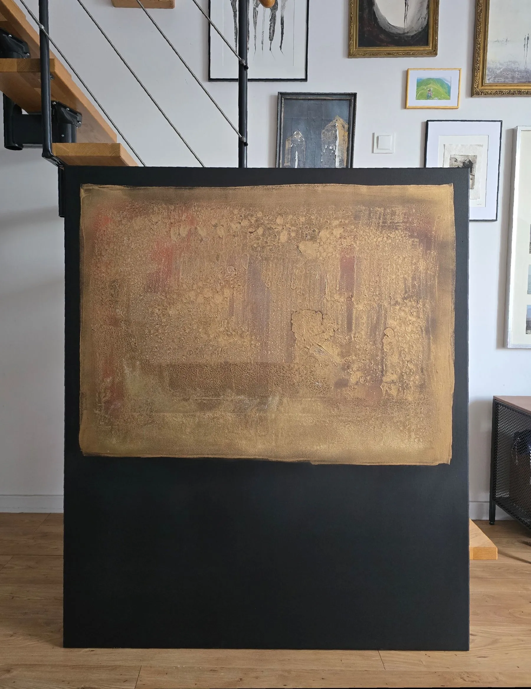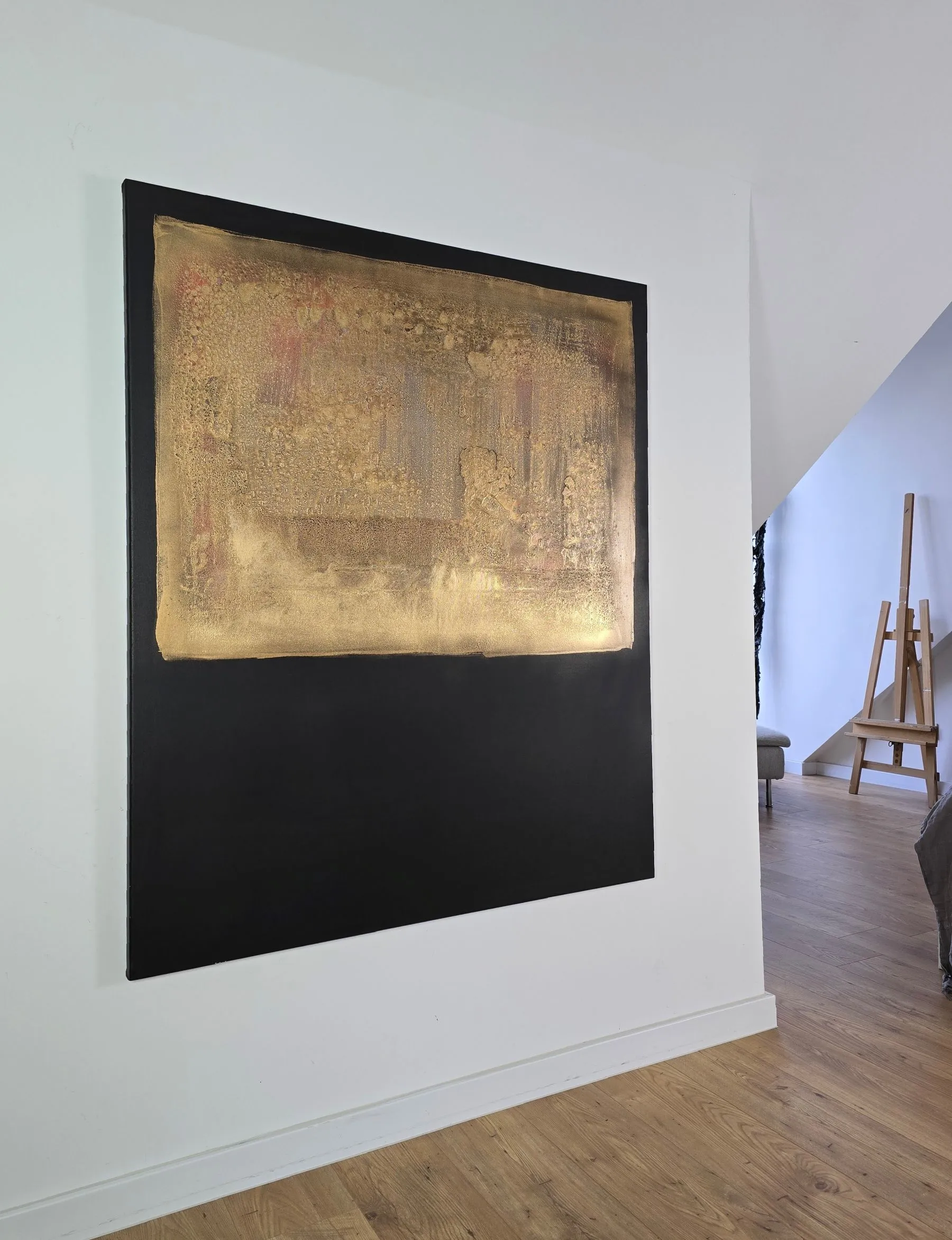 Nowoczesna Abstrakcja BLACK&GOLD, ręcznie malowany z wyraźną strukturą