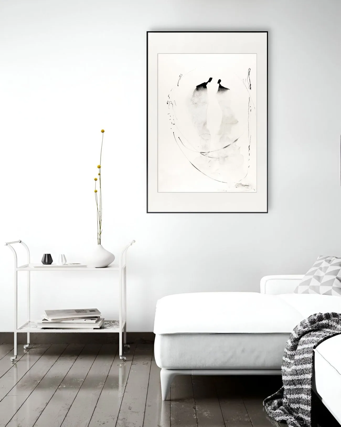 Minimalistyczna forma i monochromatyczna kolorystyka sprawiają, że grafiki pasują zarówno do loftowych apartamentów, jak i klasycznych, eleganckich salonów. To sztuka, która nie przytłacza, lecz subtelnie dopełnia aranżację, dodając jej charakteru.