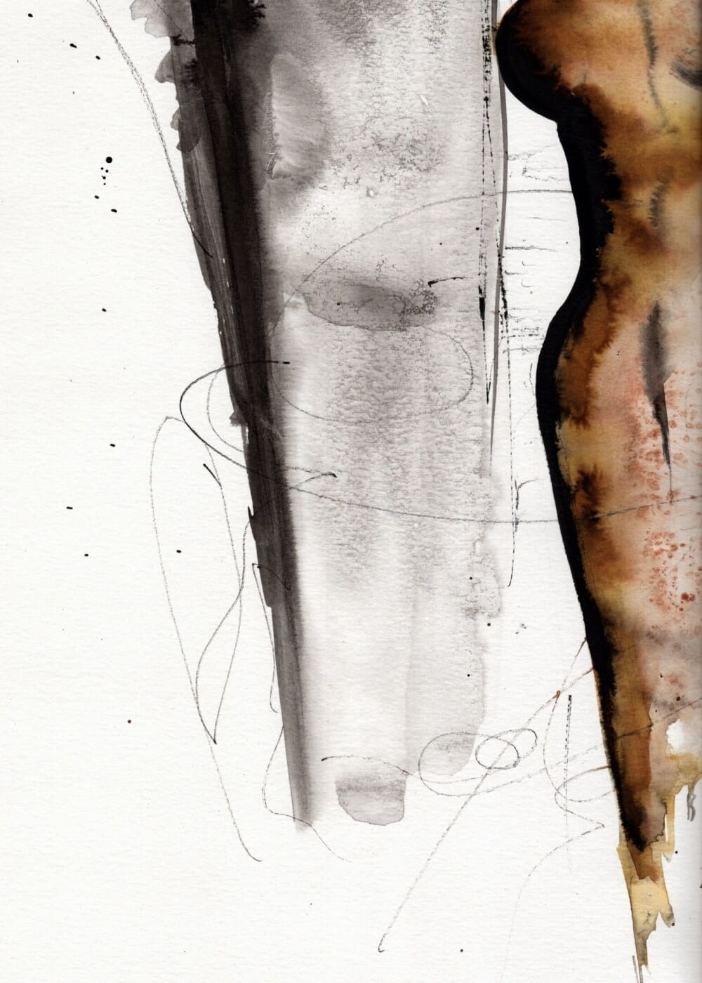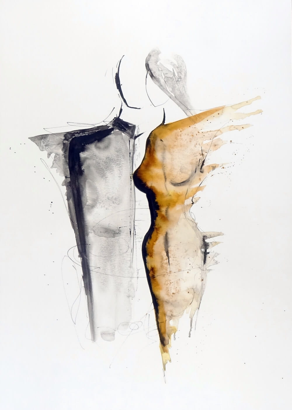 Namalowane ręcznie tuszem na tradycyjnym papierze akwarelowym, którego faktura doskonale komponuje się z delikatnością użytego medium.