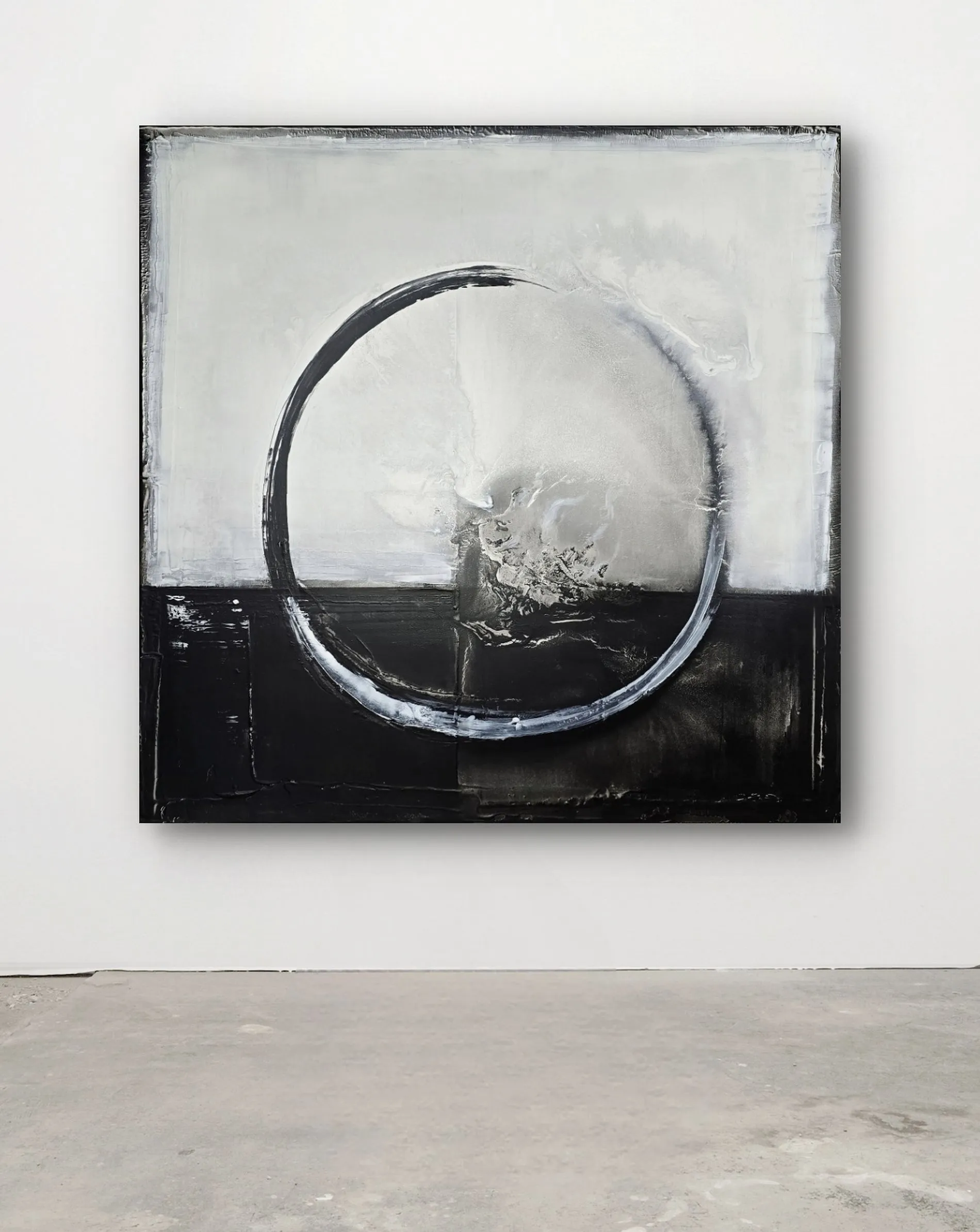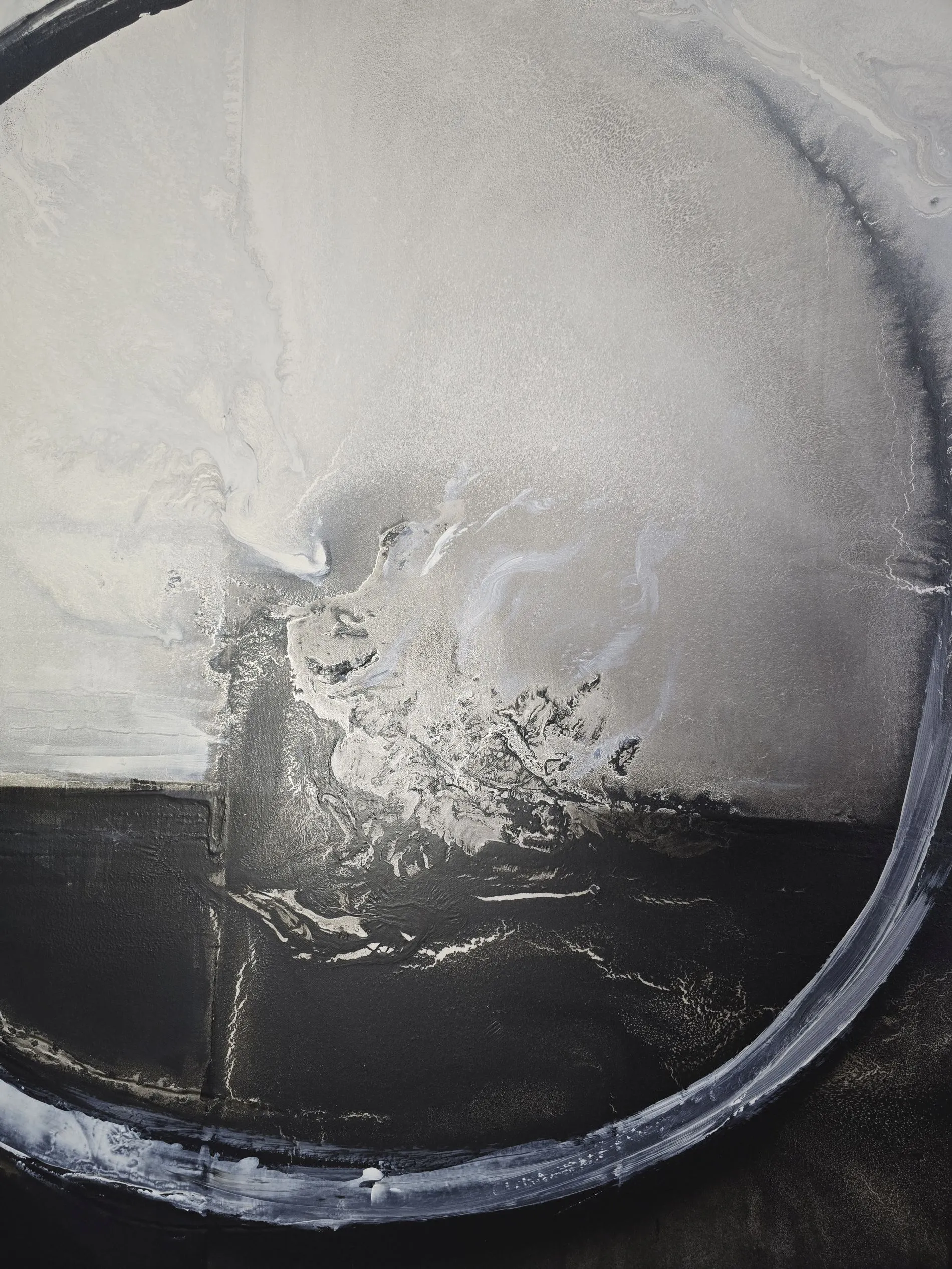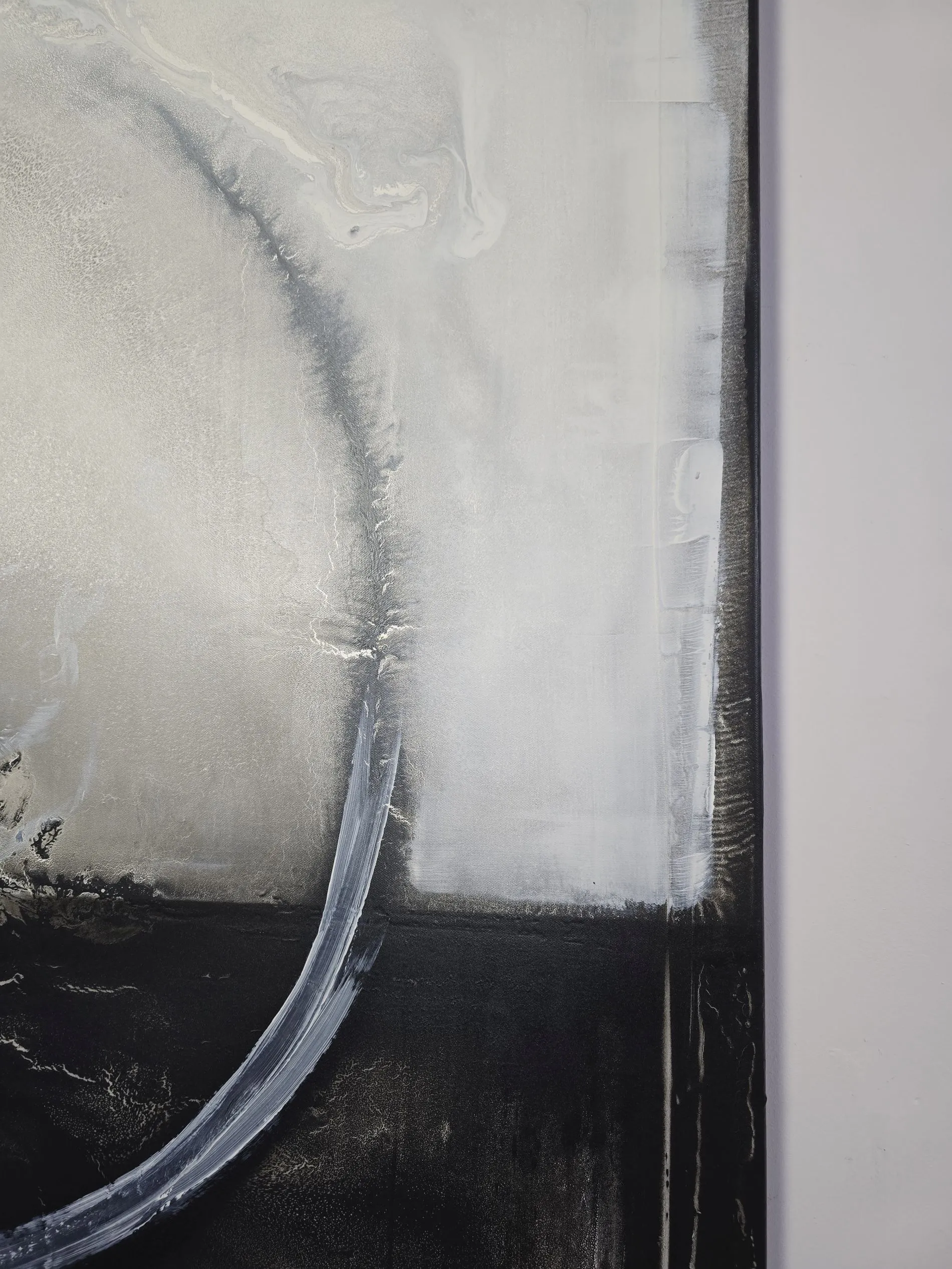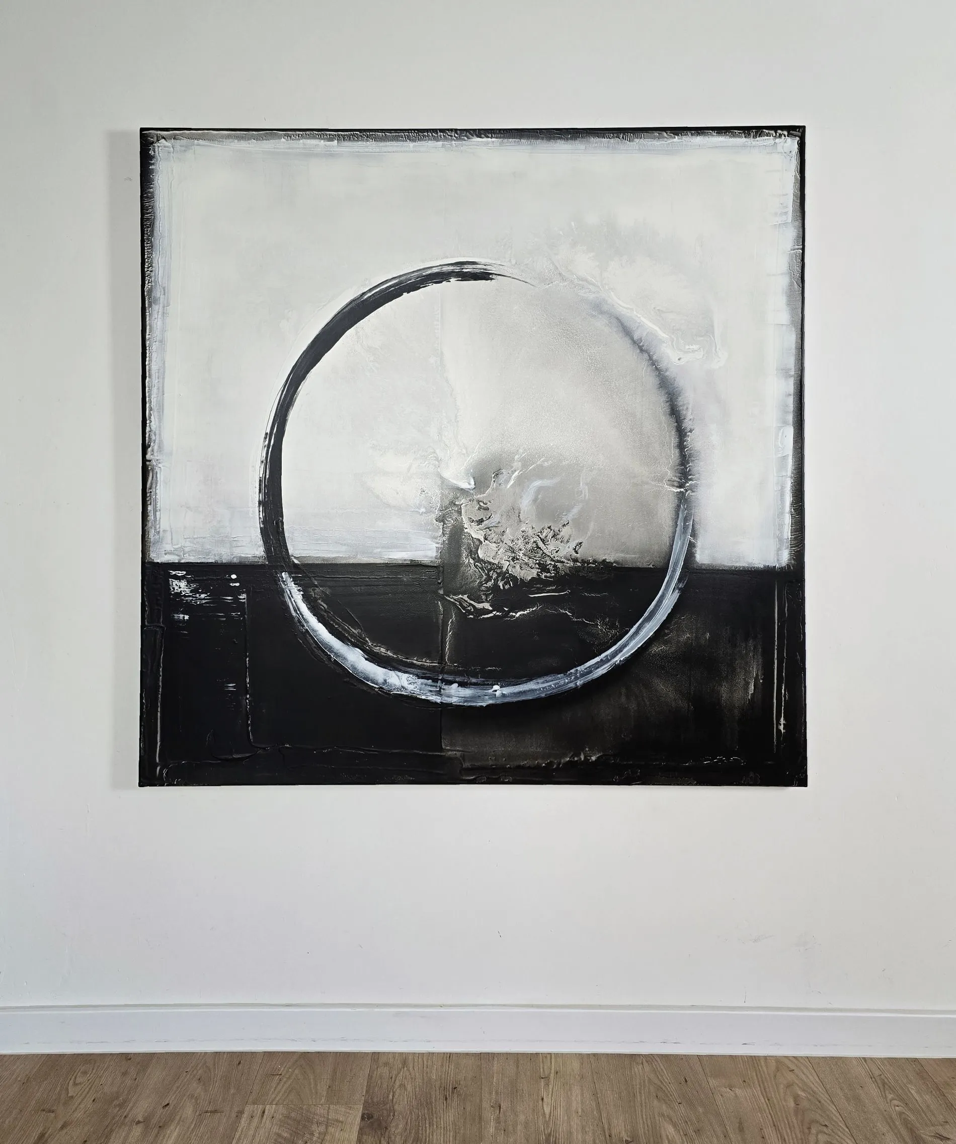 W centrum kompozycji rodzi się zakłócenie — drobny impuls, który może przekształcić pustkę w rzeczywistość. Obraz staje się zapisem niewidzialnej energii, która istnieje zanim zostanie nazwana. Fizyka kwantowa i malarstwo? intrygujące połączenie pobudzające abstrakcyjną wyobrażnię. Obraz z bogatą strukturą farby. Nieoczywista forma wyrazu prowokuje nasz umysł, pobudza myśli i skojarzenia. Odważne, mocne połączenia kolorystyczne i forma obrazu podkreśli charakter nowoczesnej przestrzeni. Sygnatura artystki i certyfikat na odwrocie obrazu.