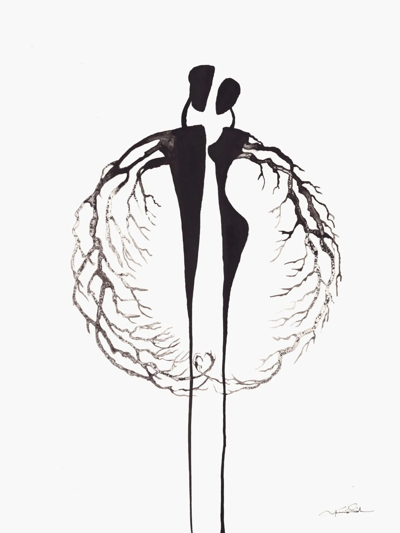 Praca została wykonana w autorskiej technice z użyciem tuszy.