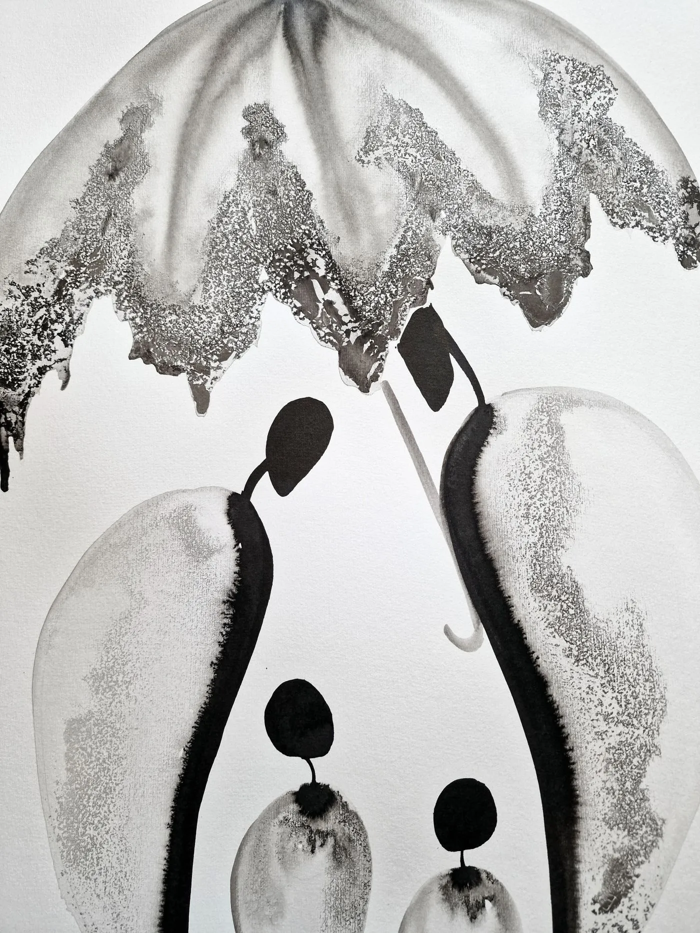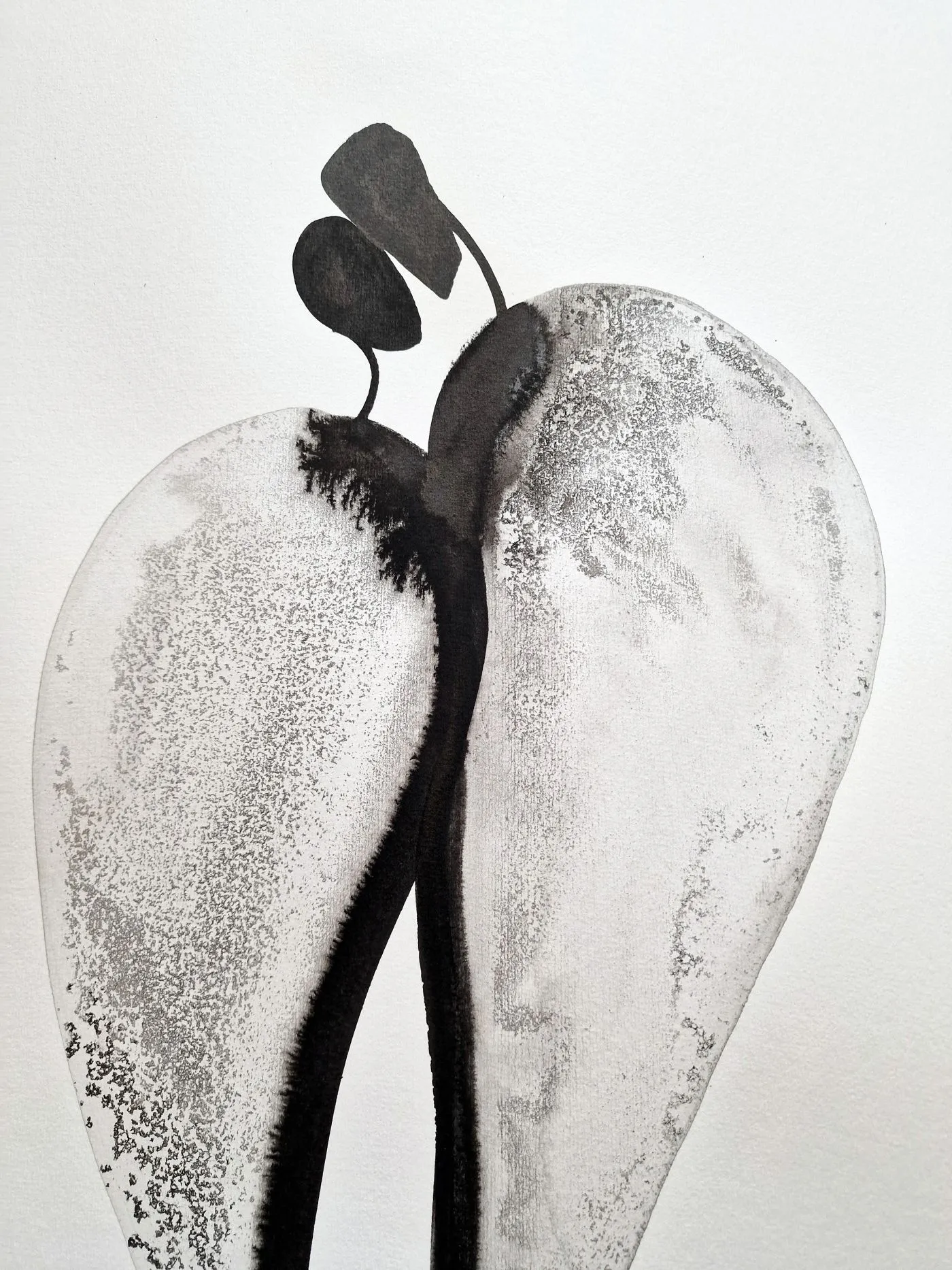 Dyptyk składający się z dwóch oryginalne grafik artystycznych. Grafiki zostały wykonane ręcznie tuszem na tradycyjnym papierze akwarelowym z tłoczoną pieczęcią. Unikatowe - technika nanoszenia tuszu sprawia, że każda z prac jest niepowtarzalna. Jakość papieru i jego faktura podkreślają oryginalność ręcznie wykonanej pracy.