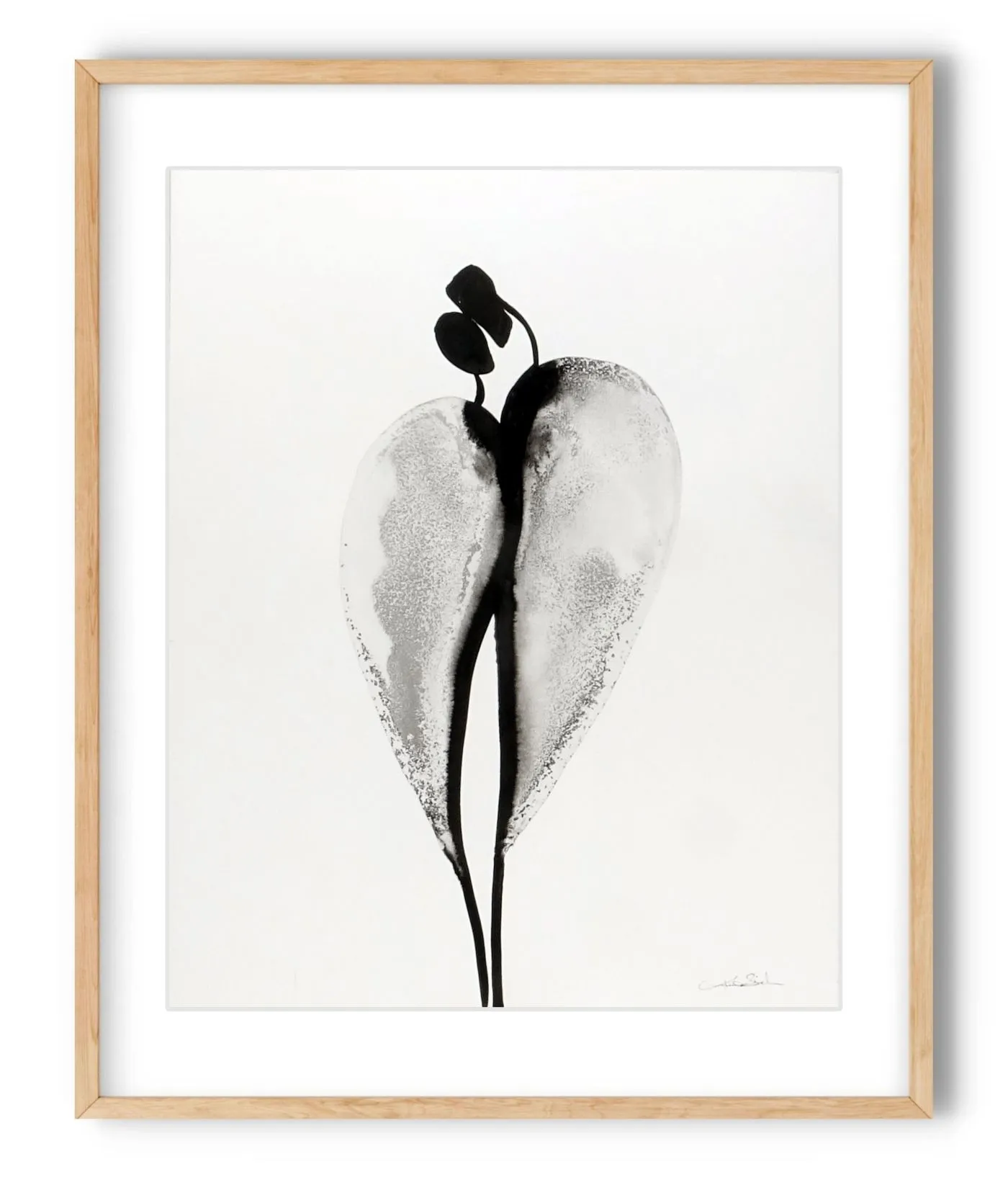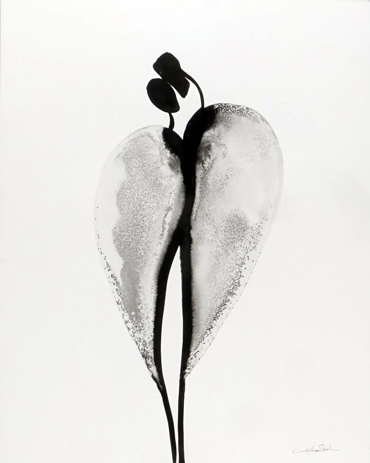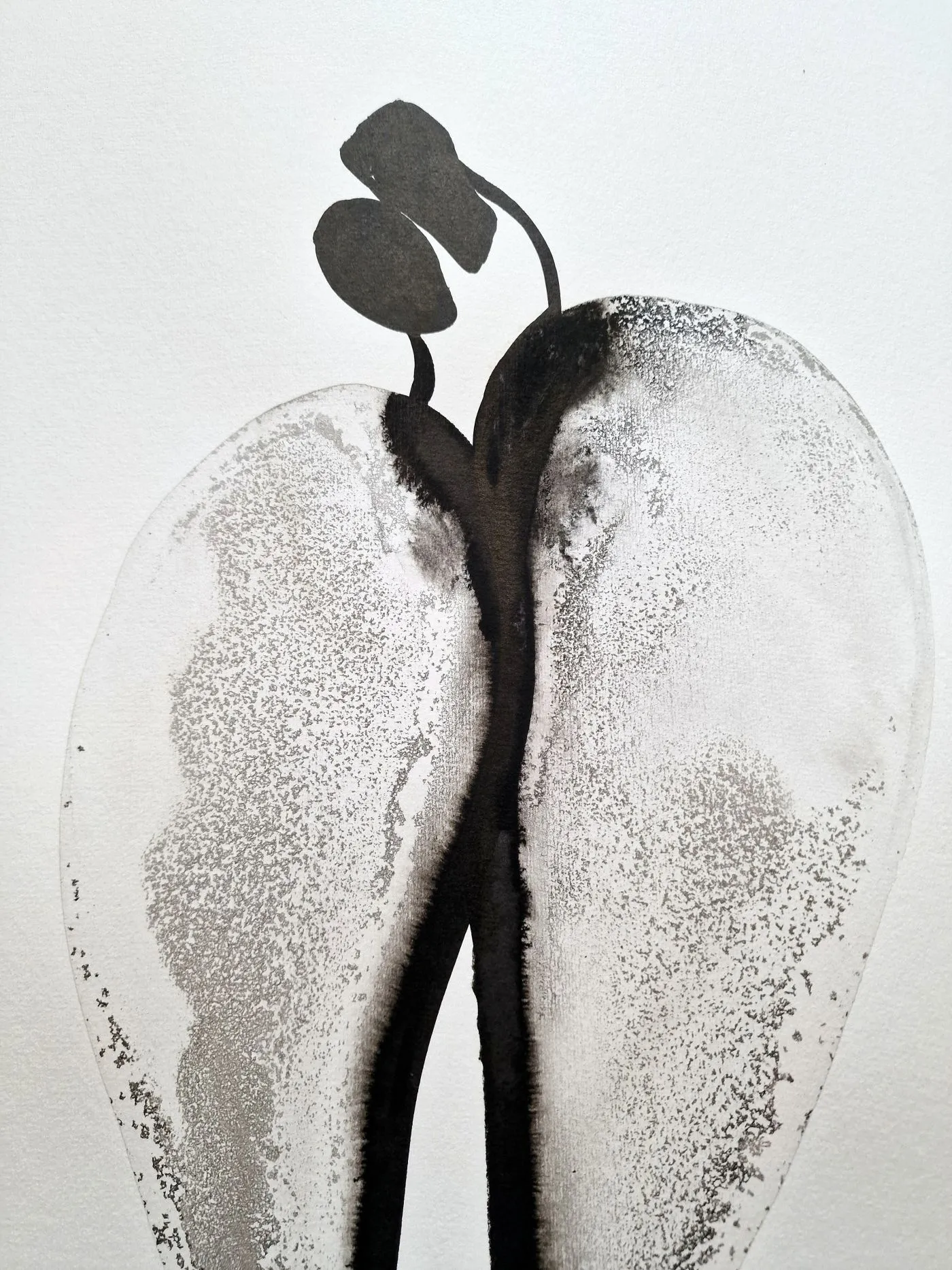 Ręcznie wykonana tuszem na tradycyjnym papierze akwarelowym, którego faktura doskonale komponuje się z delikatnością użytego medium.  Czarny tusz z dodatkiem ciepłych odcieni szarości. Elegancki minimalizm z subtelną symboliką.