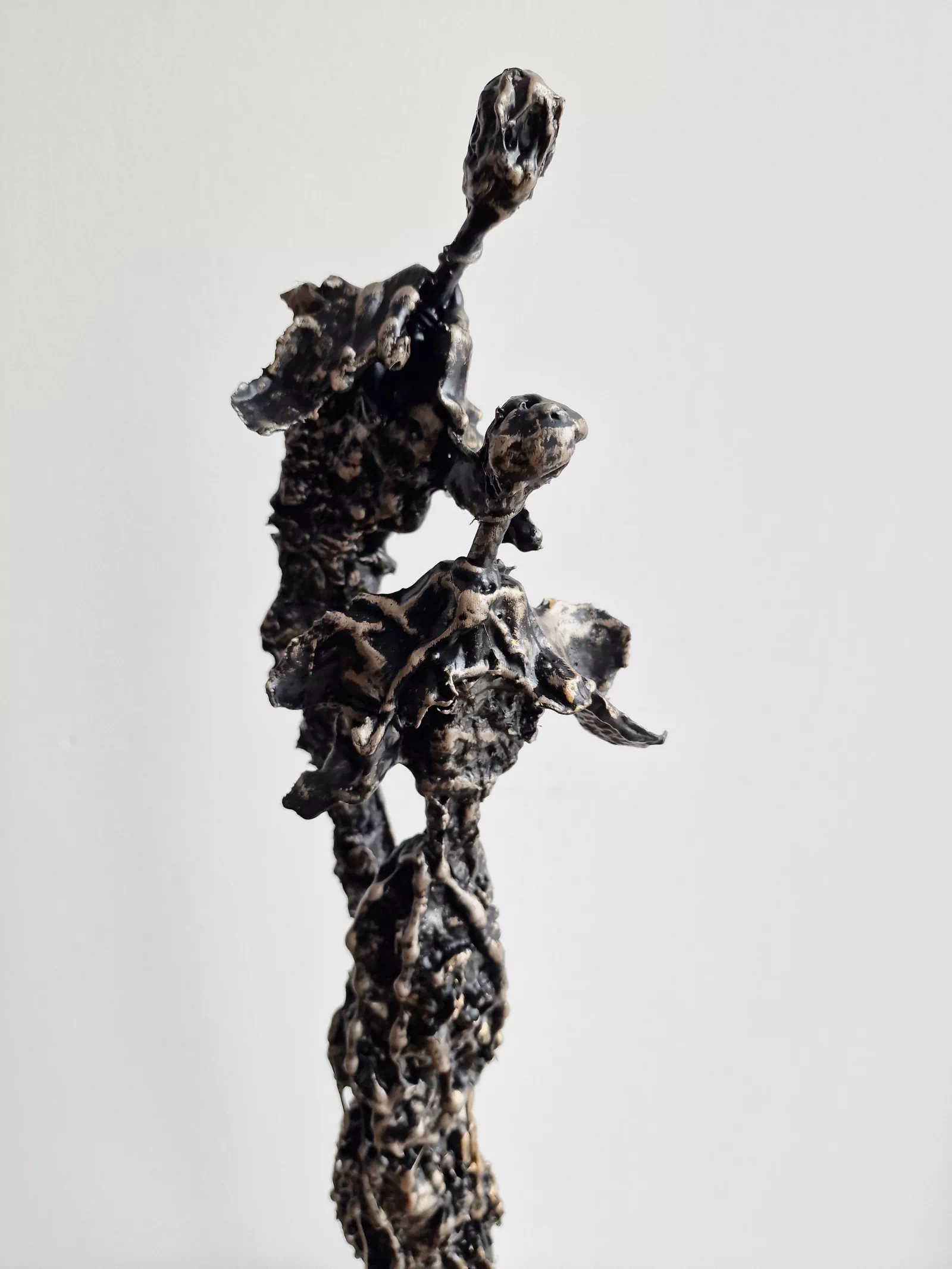 Mała rzeźba Sploty no.39 figurka z gliny i stali, anioły, nowoczesna