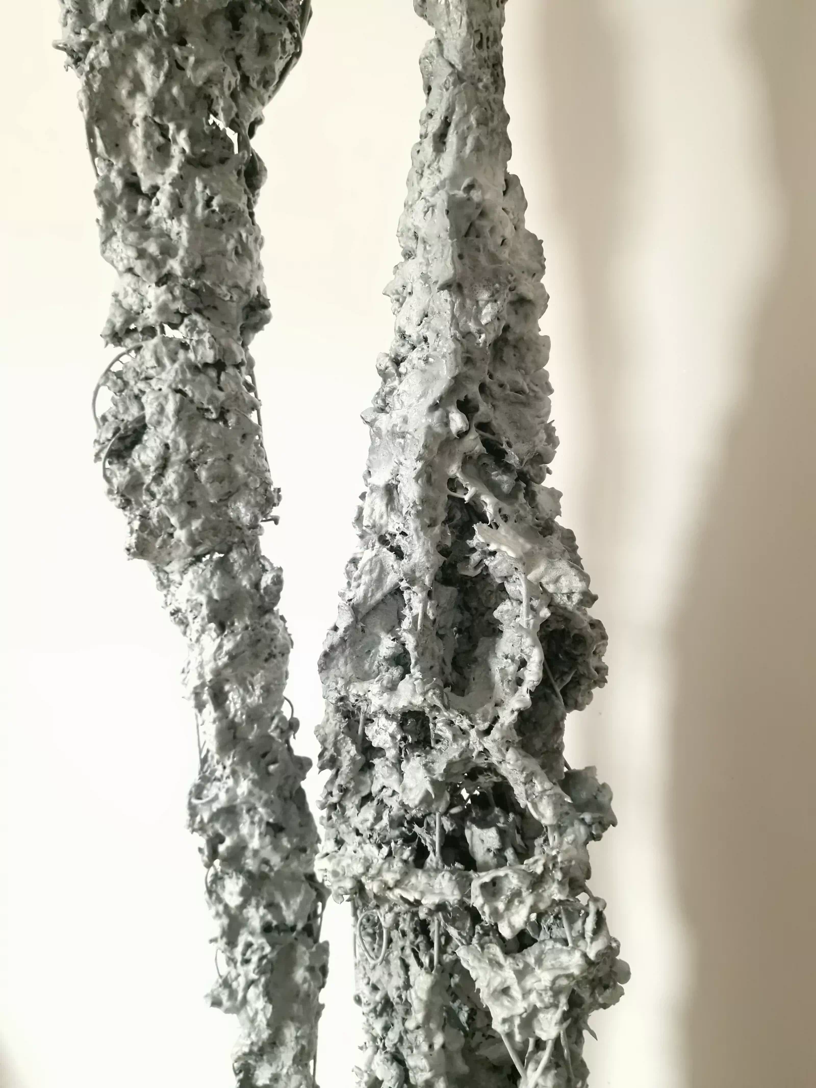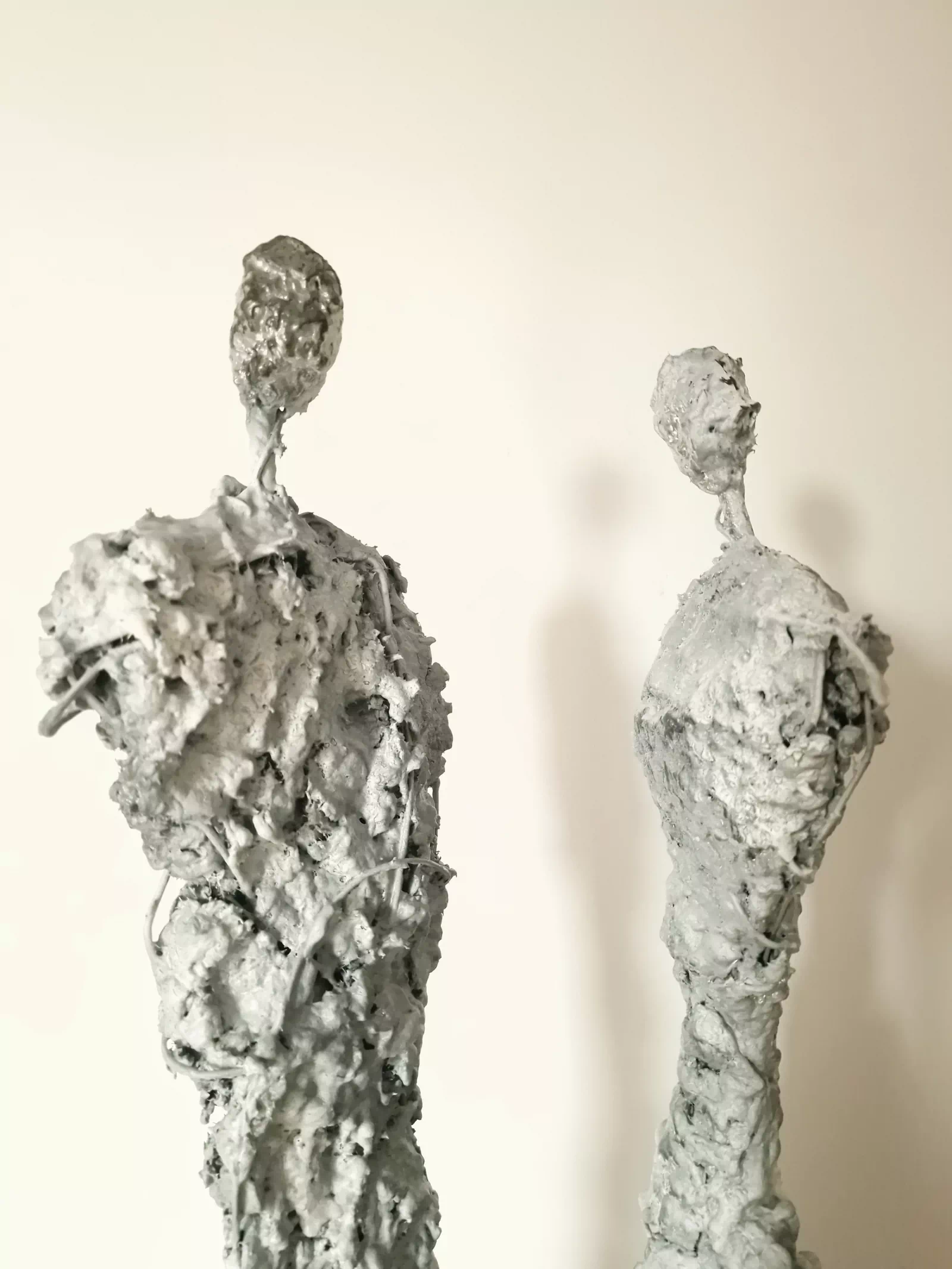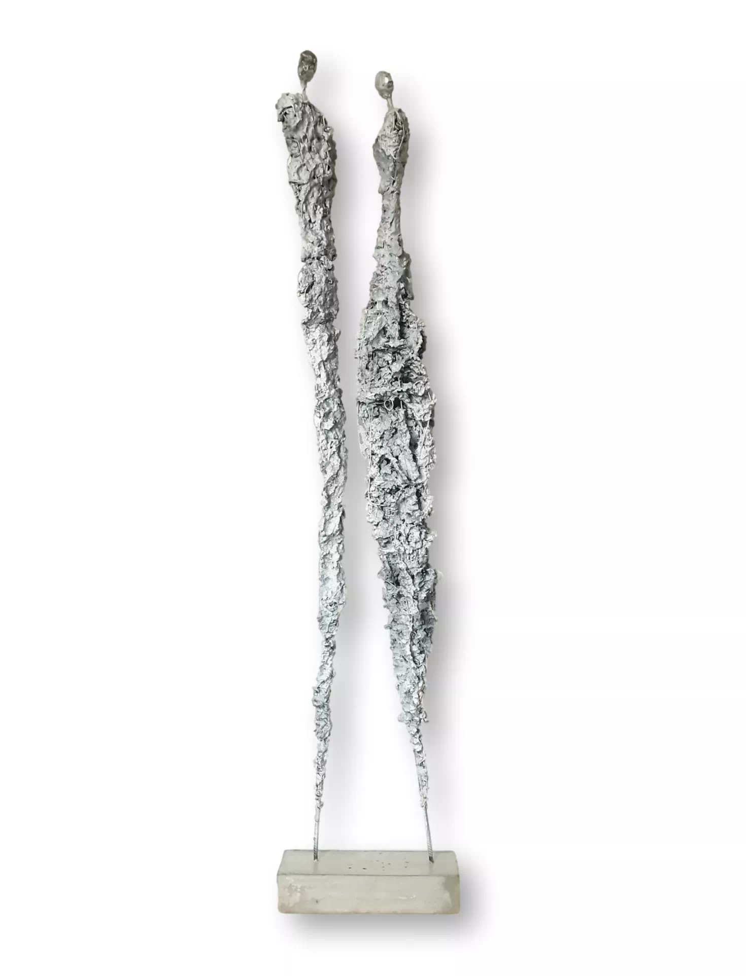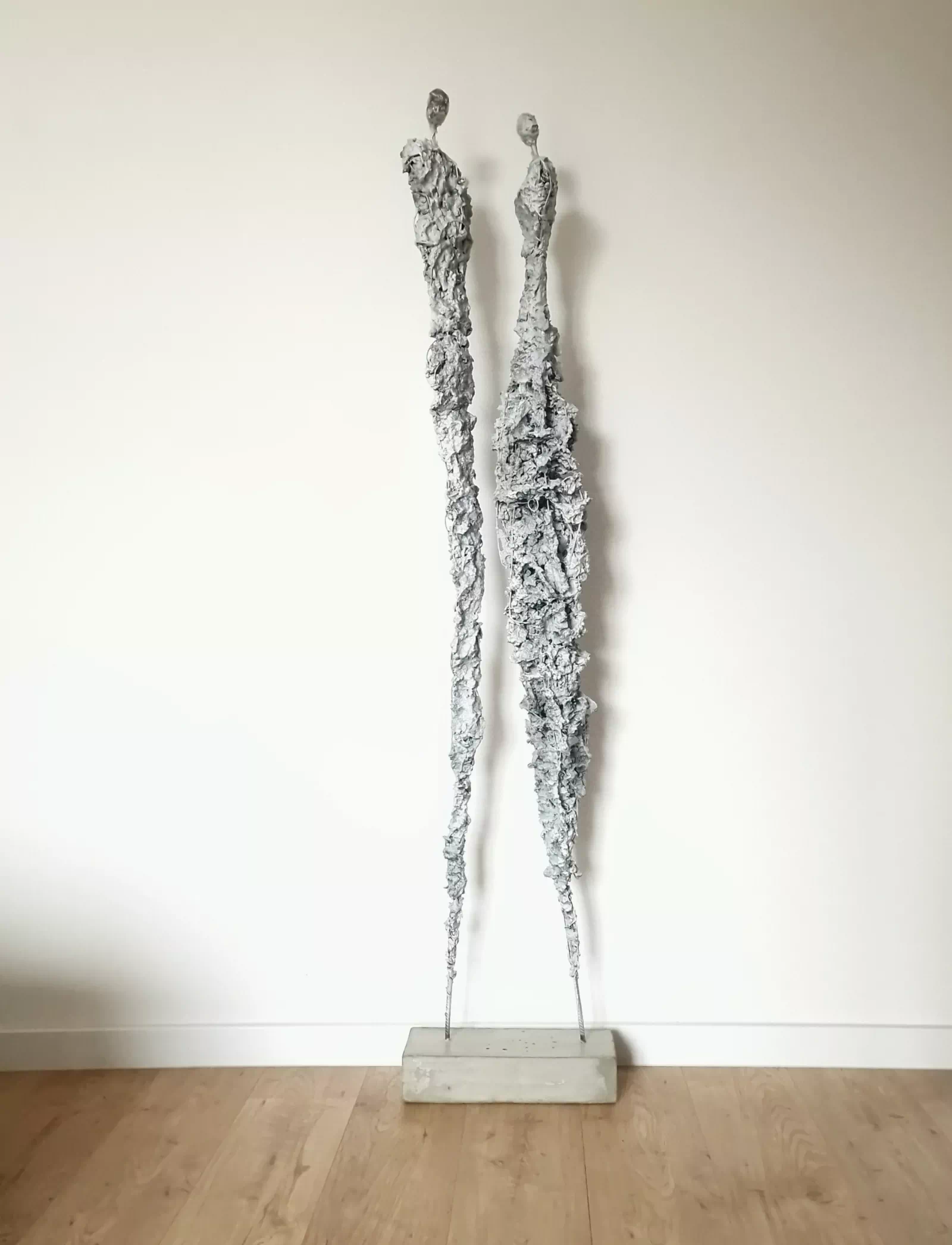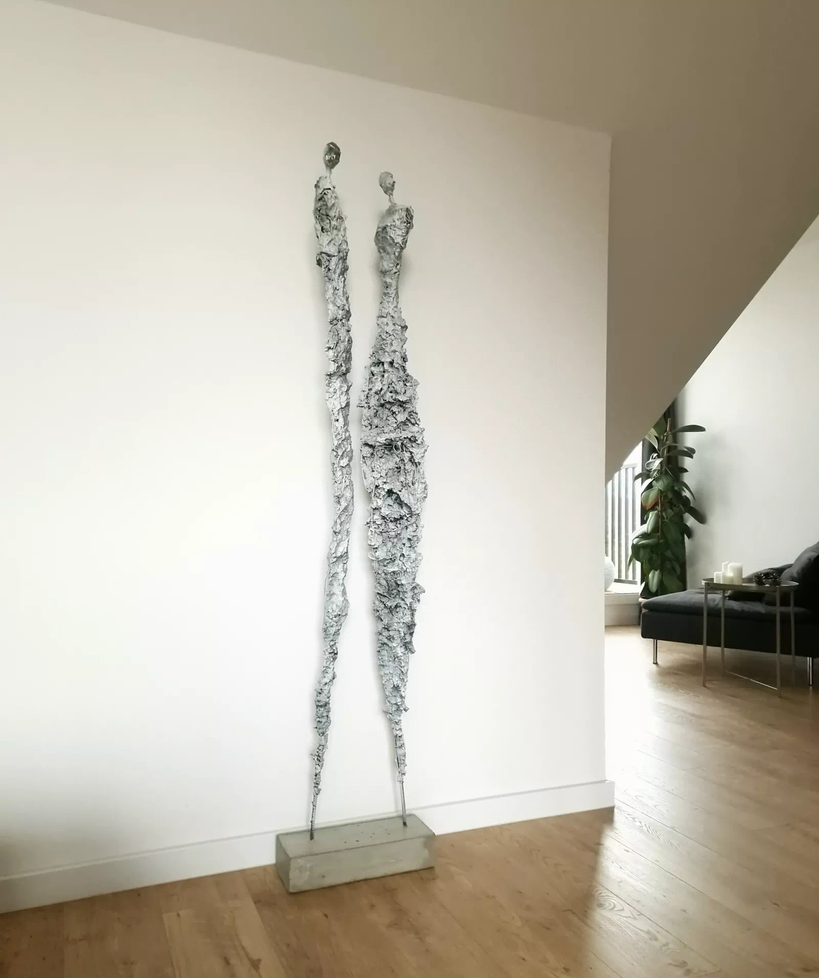 Rzeźba abstrakcyjna została wykonana z metalu, gliny i betonu. Ekspresyjna rzeźba przytulonej pary z bogatą strukturą, która nadaje jej lekkości i zwiewności. Cykl rzeźb nawiązuje do kolekcji obrazów i grafik Point od Balance. Motyw kamiennych postaci został przeniesiony do formy przestrzennej. Biomorficzne kształty nawiązujące do ludzkich sylwetek wyrażają emocje i relacje jakie dzielimy z innymi. Rzeźba ma nowoczesną formę, surowość materiałów z jakich została wykonana, łączenia i spawy została złagodzona plastycznością gliny i masy z sproszkowanego kamienia. Użyta kolorystyka uwydatnia charakter rzeźby. Delikatny połysk został częściowo zmatowiony, co daje efekt patyny. Rzeźba z cyklu Postać jest niezwykle osobliwa również ze względu na efekt jaki wywołuje oglądana z bliska, z uwagi na bogactwo szczegółów i szlachetność wykończenia.