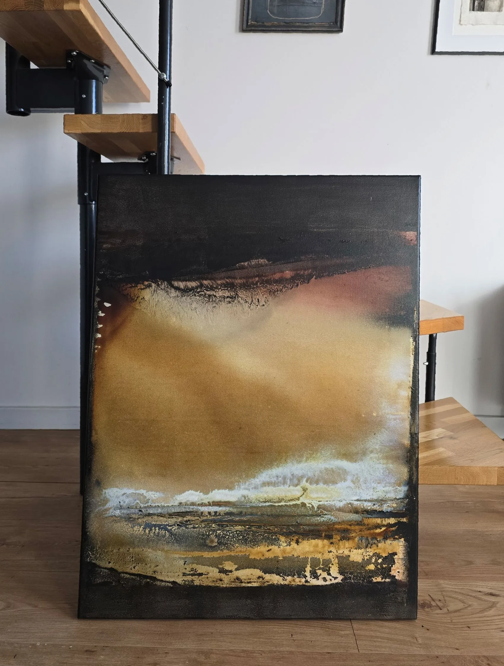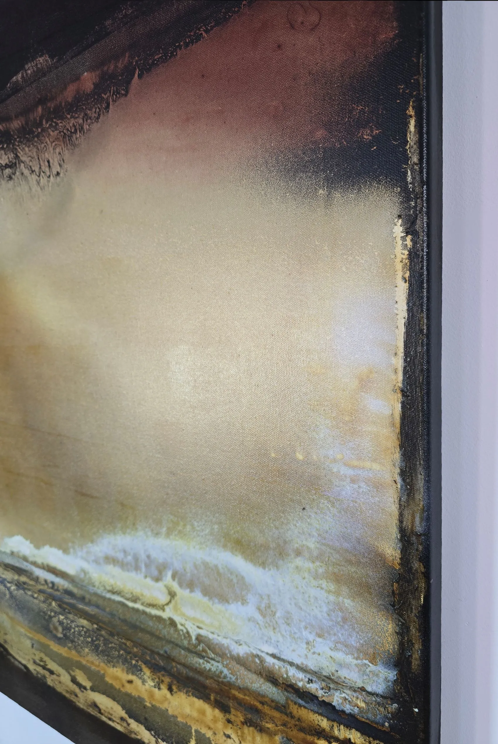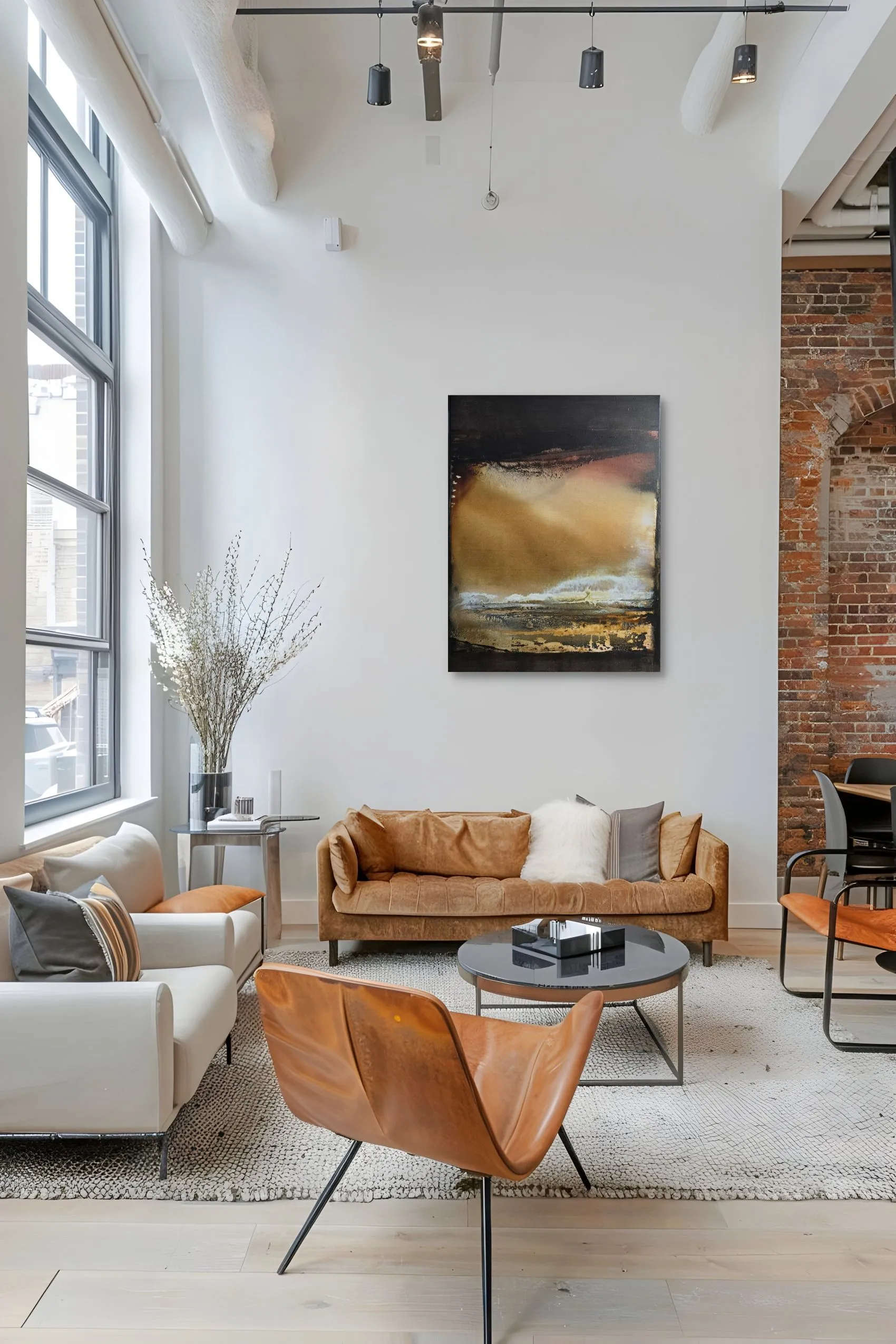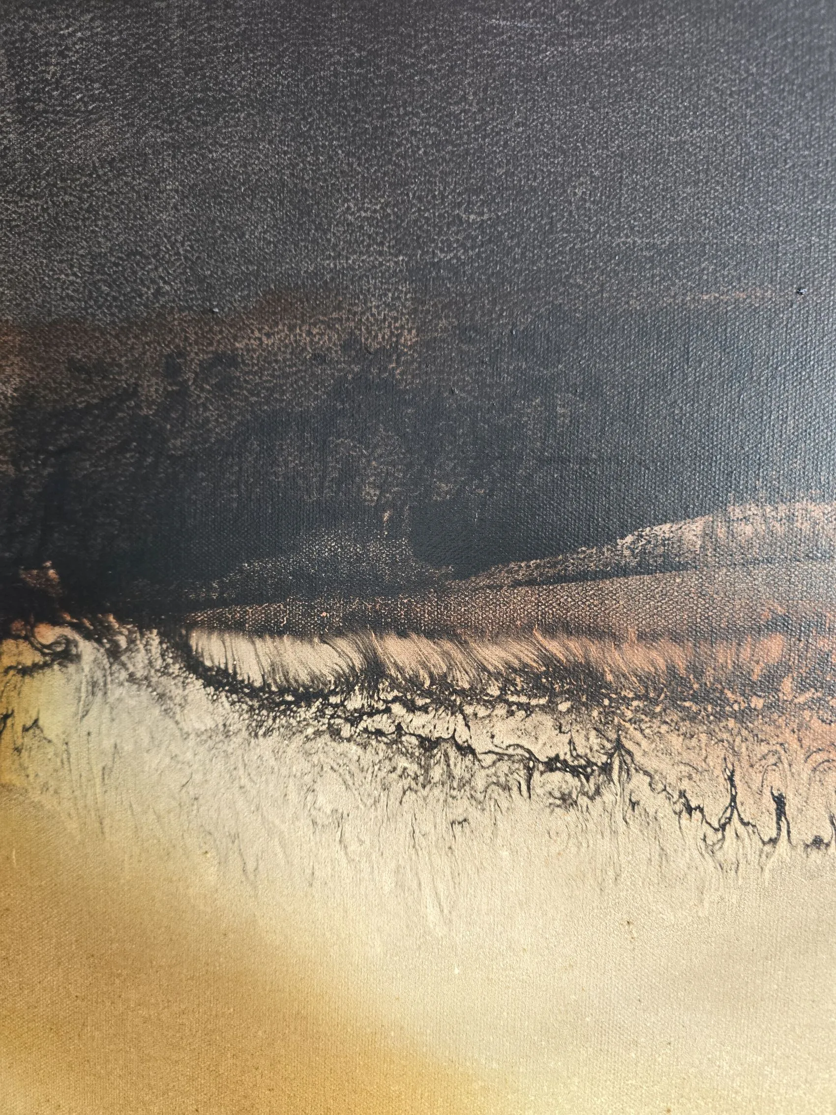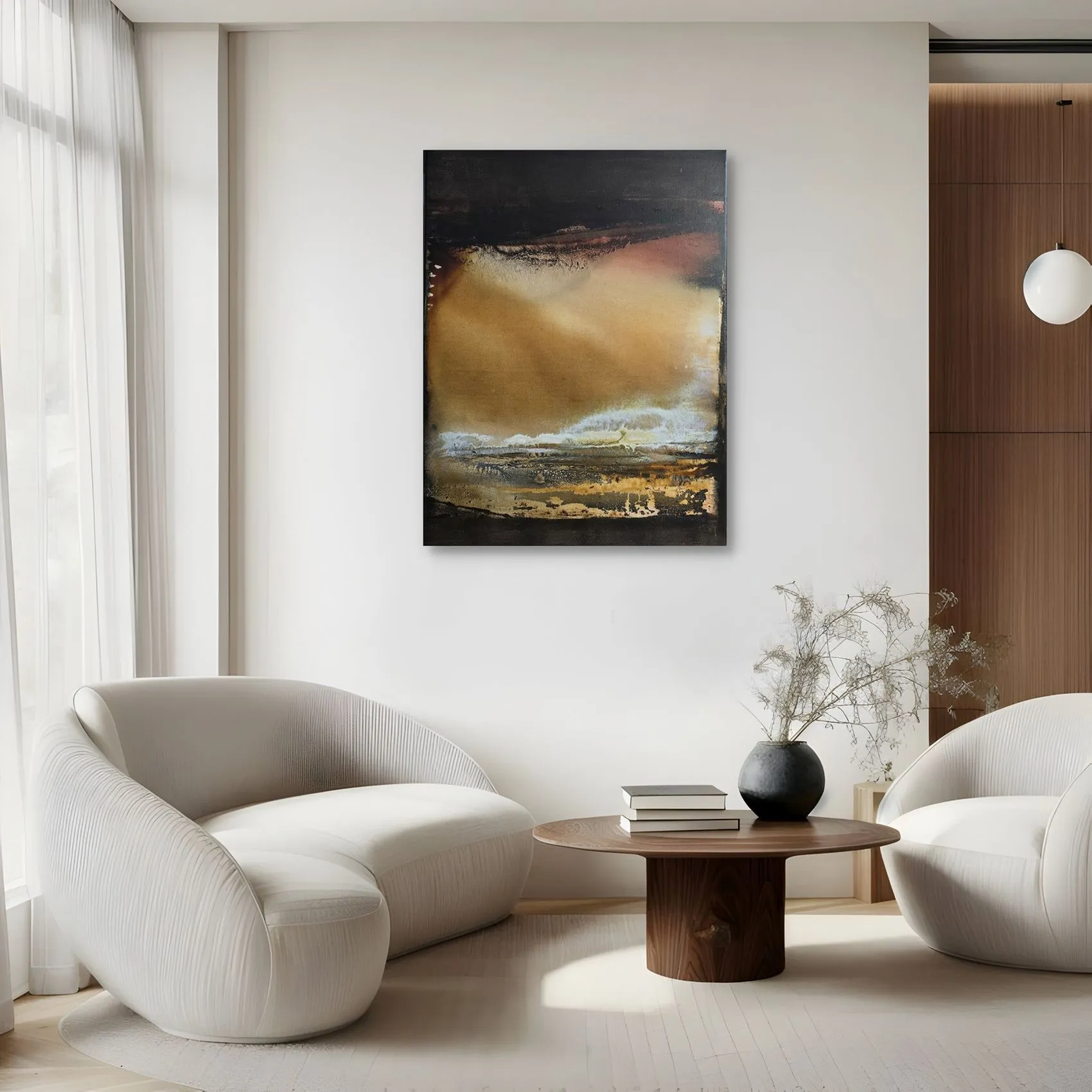 Stworzony w technice mixed media i farb akrylowych, z wyraźną strukturą powierzchni, obraz wnosi do wnętrza ciepło i głębię. Idealnie odnajduje się w aranżacjach nowoczesnych, industrialnych, japandi, ale też w eleganckich przestrzeniach biurowych.