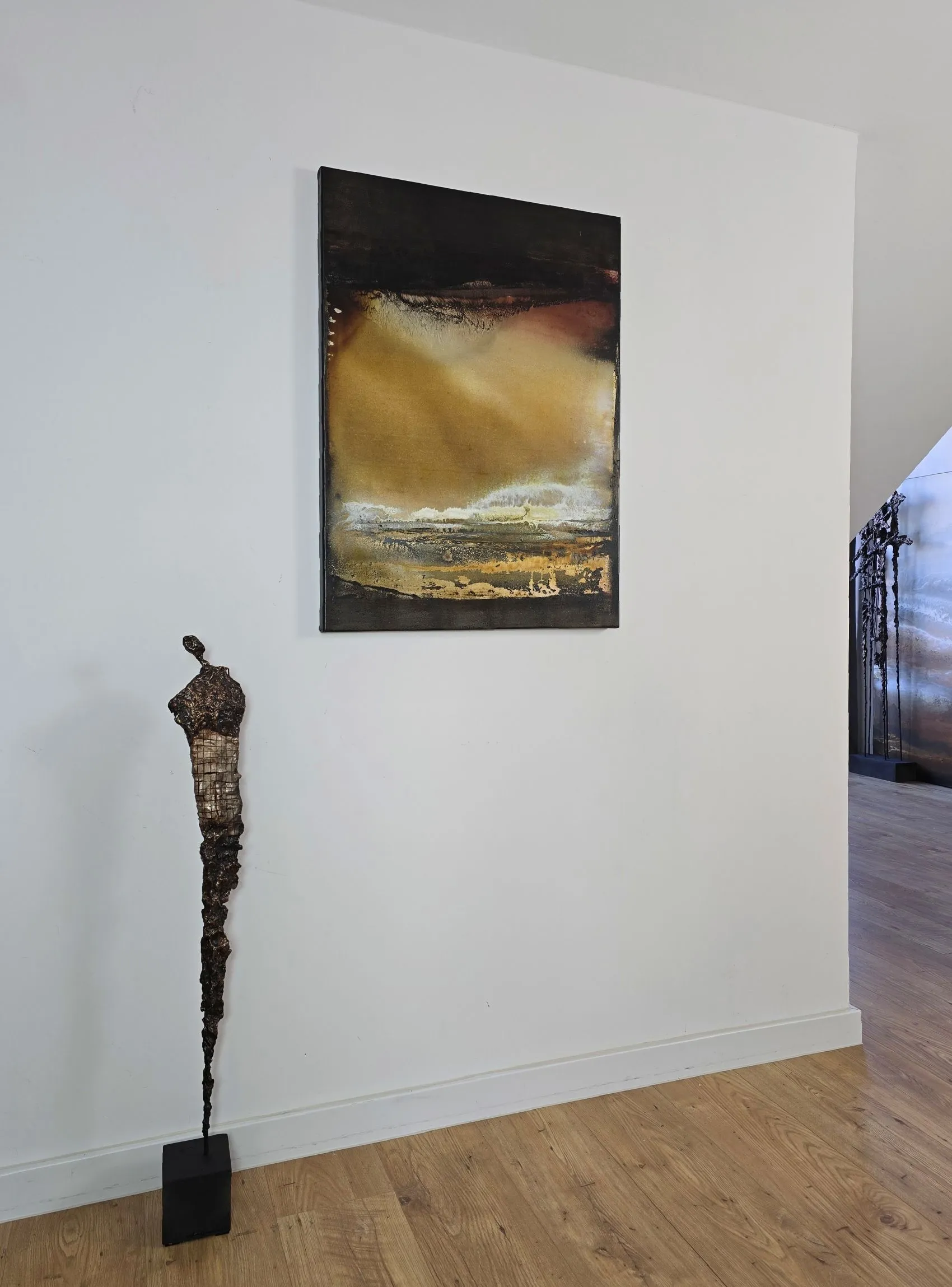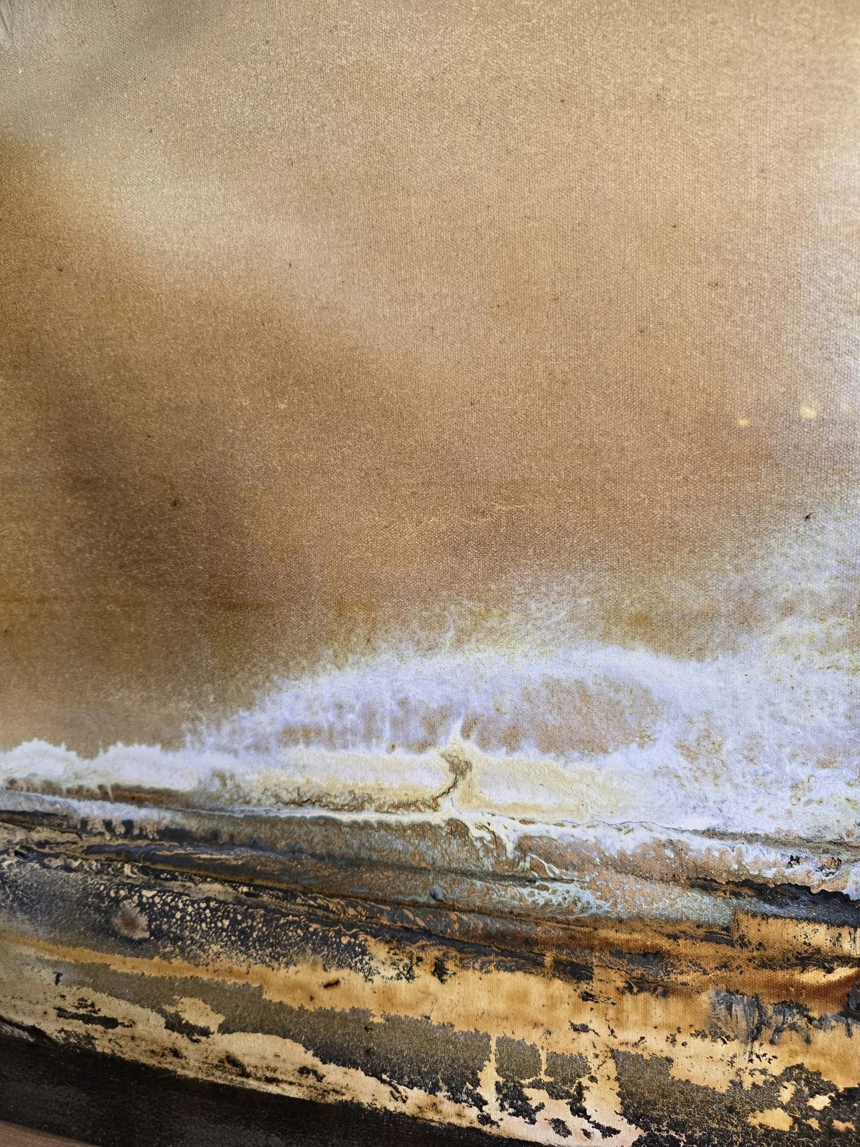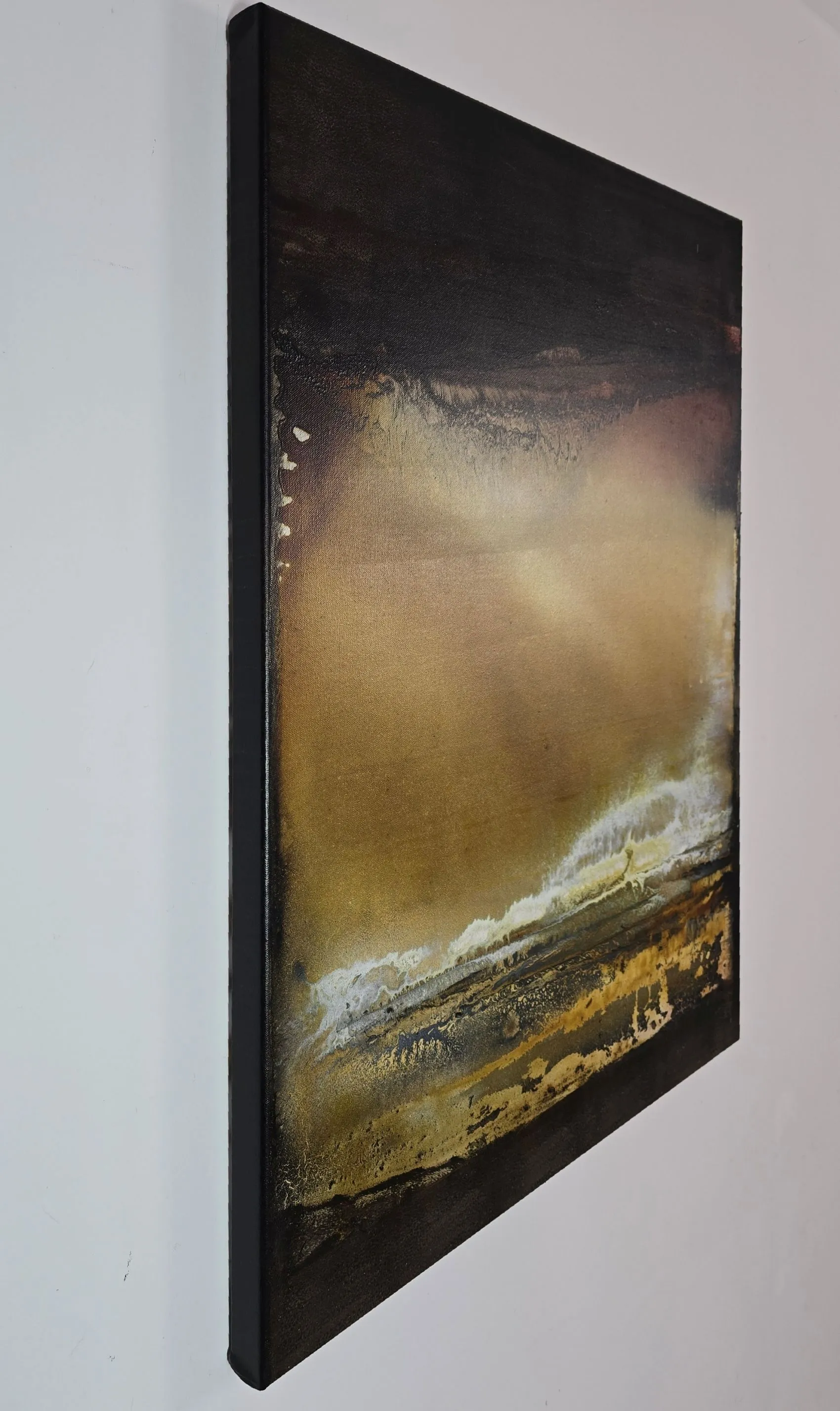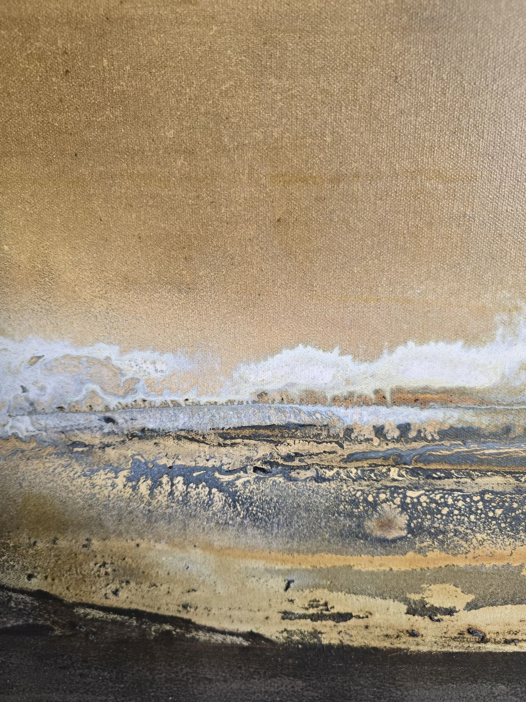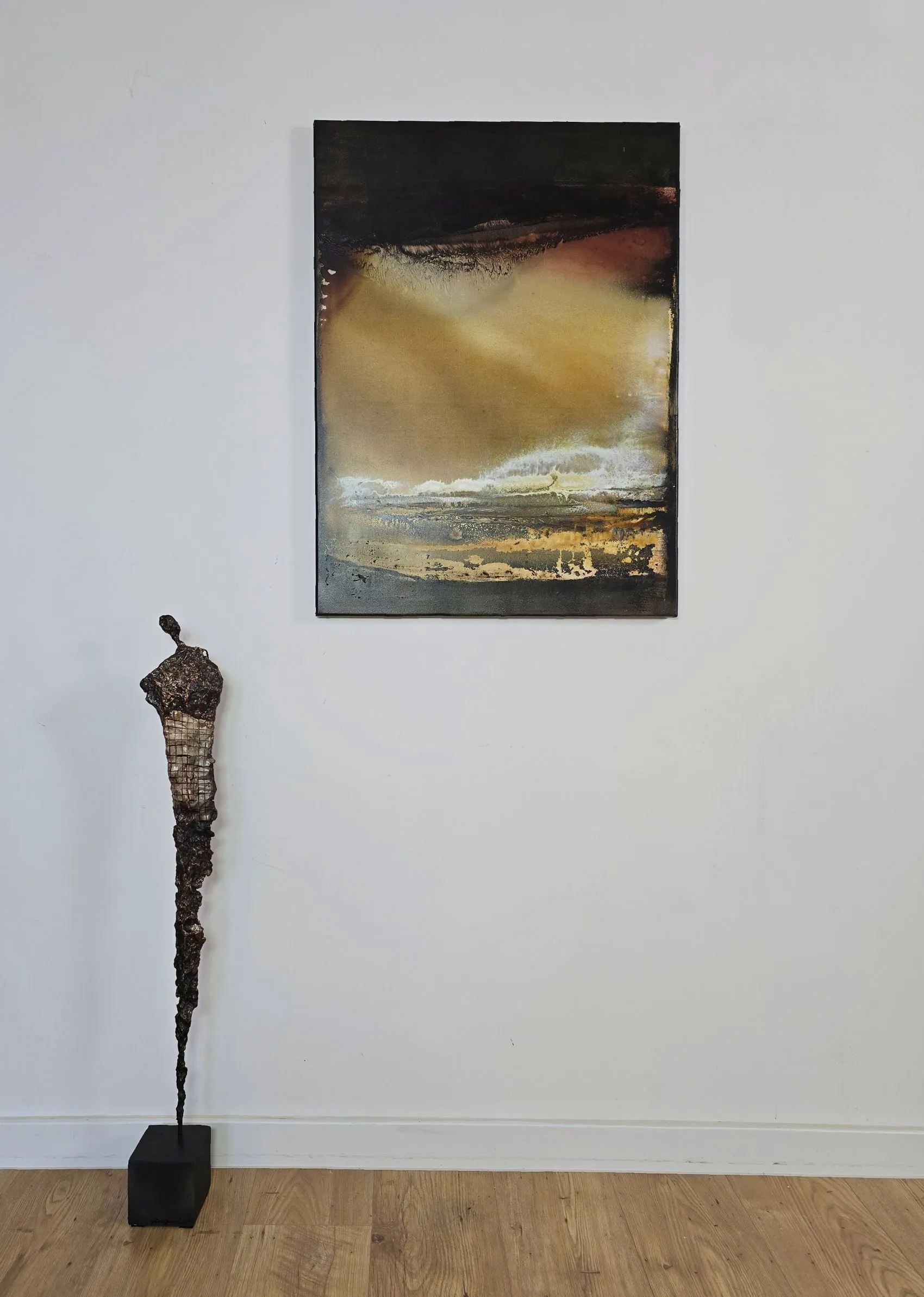 Stworzony w technice mixed media i farb akrylowych, z wyraźną strukturą powierzchni, obraz wnosi do wnętrza ciepło i głębię. Idealnie odnajduje się w aranżacjach nowoczesnych, industrialnych, japandi, ale też w eleganckich przestrzeniach biurowych.