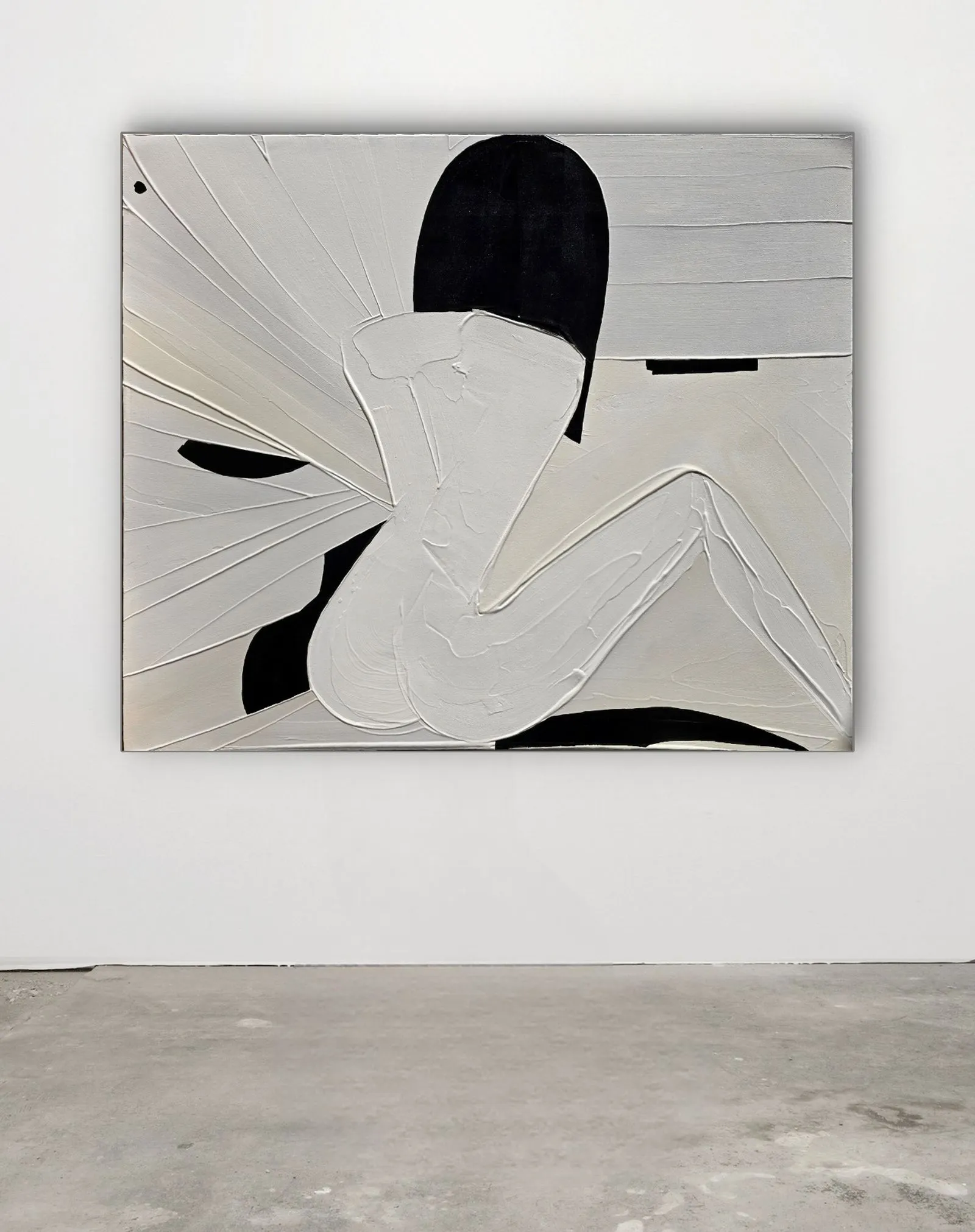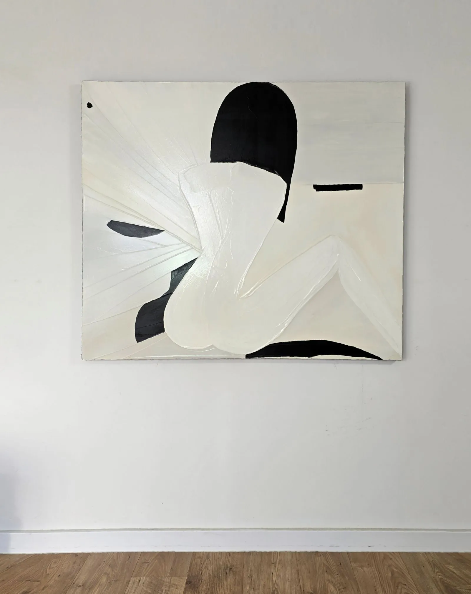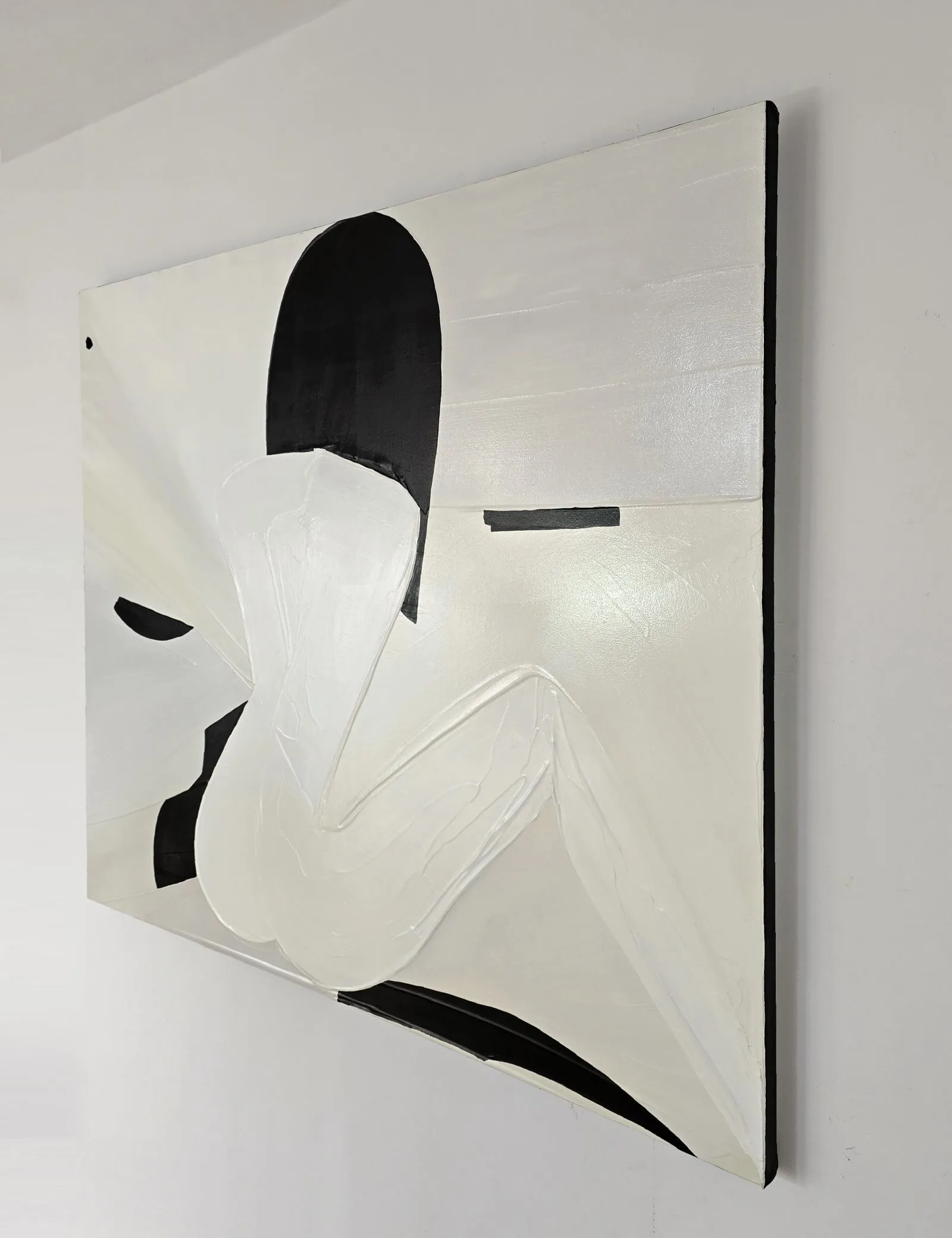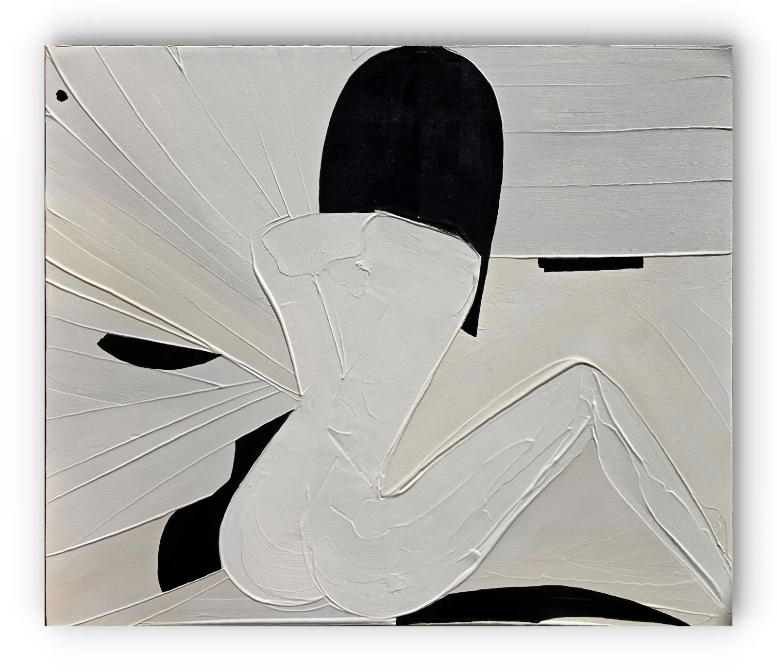 Pochodzący z cyklu Essence, obraz eksploruje fundamentalną esencję kobiecości w formie abstrakcji. Sylwetka kobiety, osadzona na tle bieli, stanowi wyraz minimalizmu, w którym każdy detal skrywa głęboką treść. Geometryczne kształty tworzą wrażenie wyciszenia i kontemplacji, a zarazem uwydatniają delikatność i siłę kobiecej natury. Kontrastujące kolory i wyrazista faktura malarska przenoszą widza w przestrzeń, gdzie forma staje się narracją – cisza i spokój emanują z kompozycji, ale to właśnie ta prostota oddaje najbardziej skomplikowane emocje.