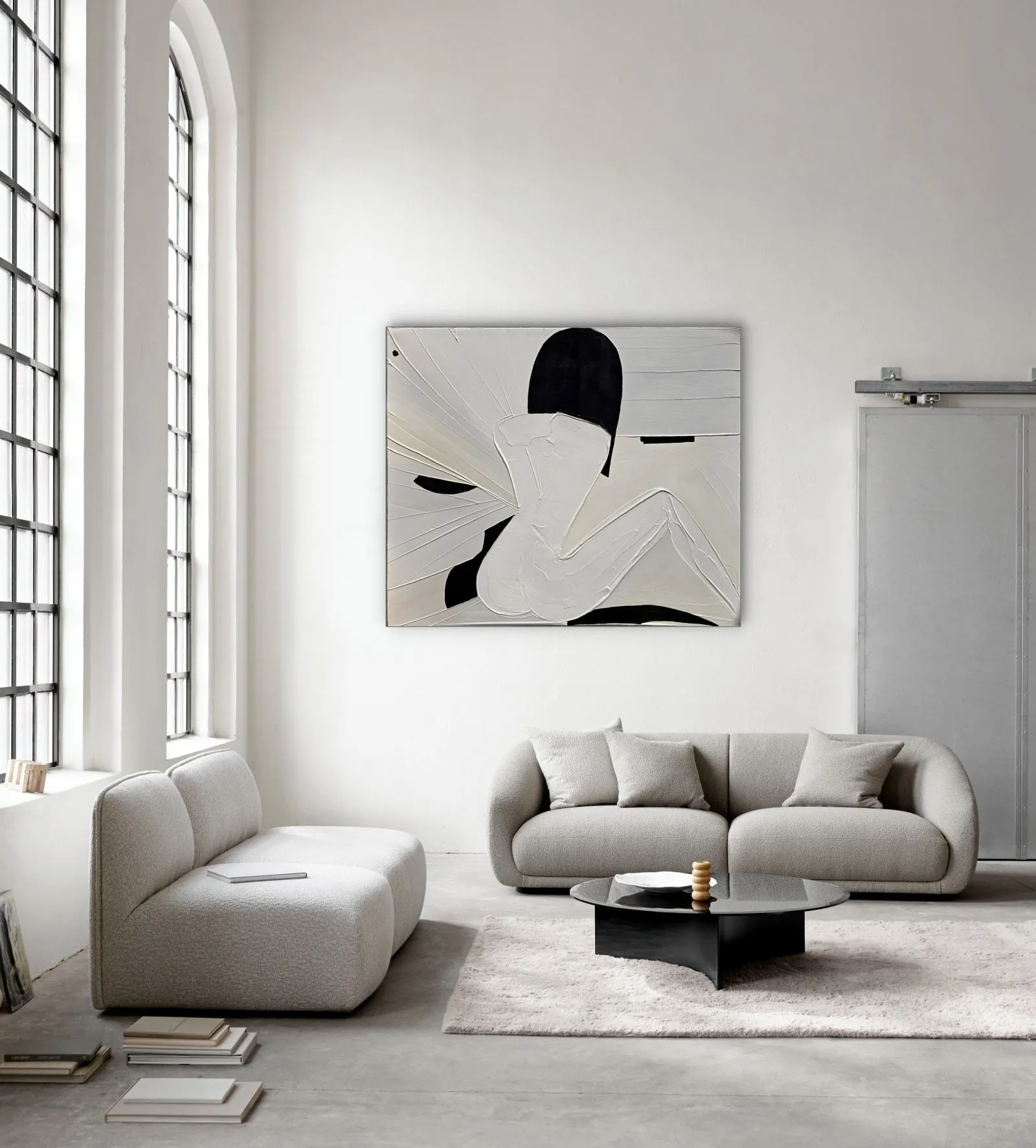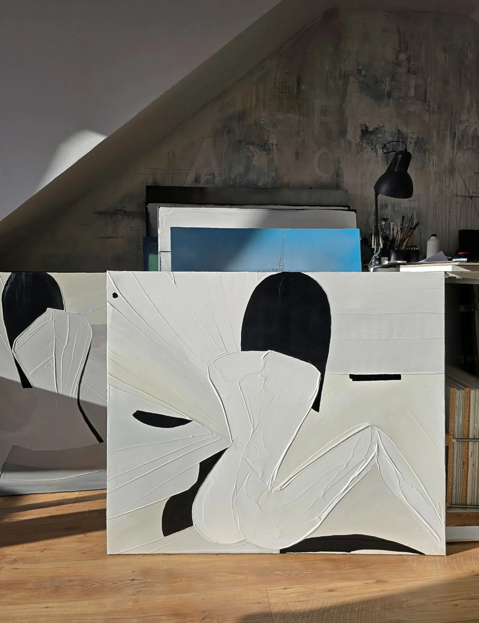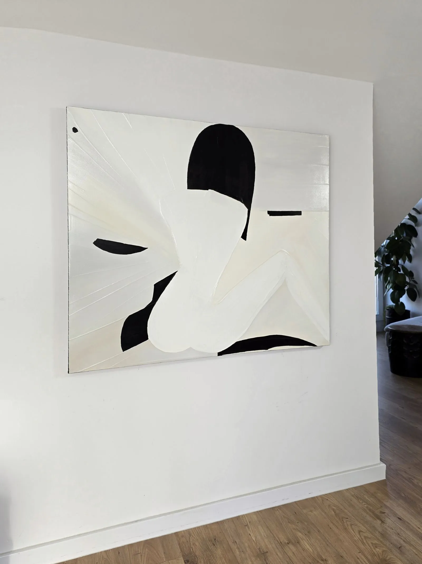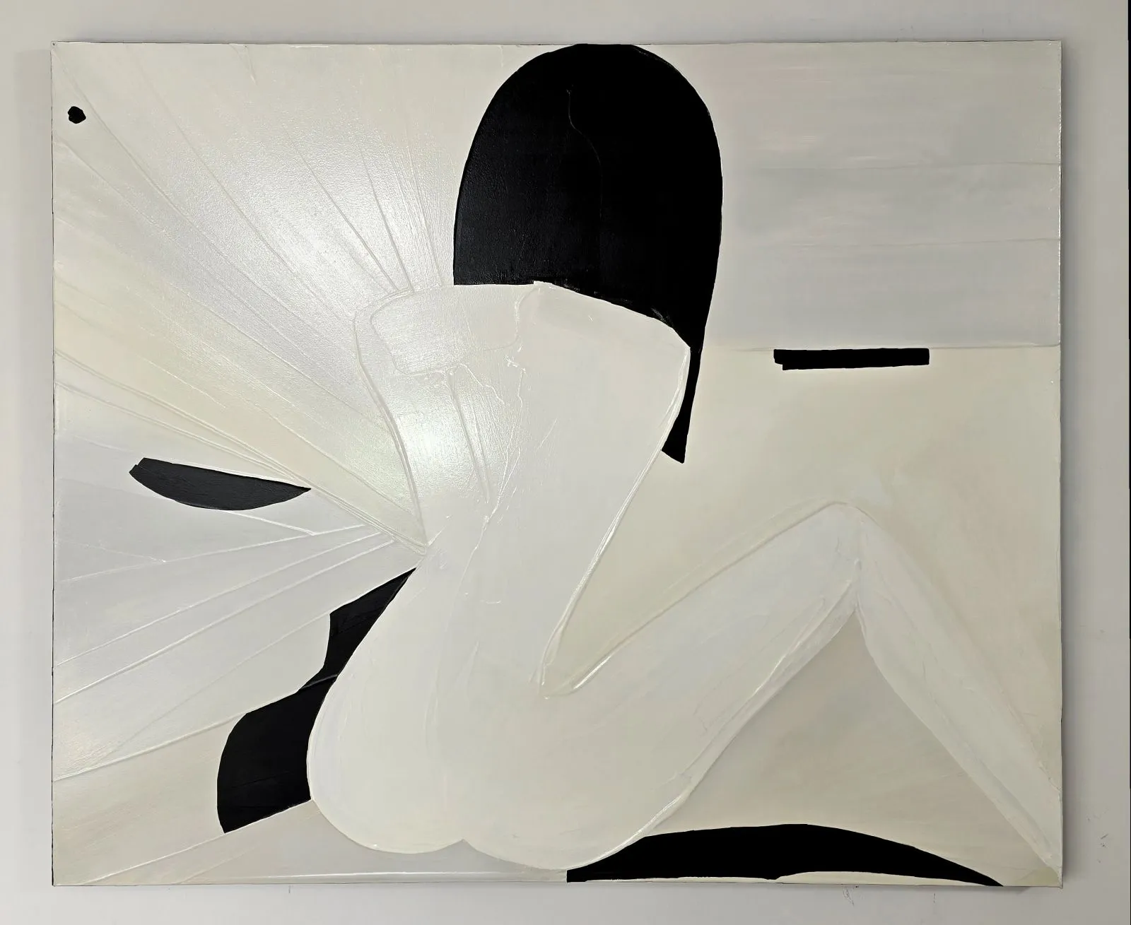 Pochodzący z cyklu Essence, obraz eksploruje fundamentalną esencję kobiecości w formie abstrakcji. Sylwetka kobiety, osadzona na tle bieli, stanowi wyraz minimalizmu, w którym każdy detal skrywa głęboką treść. Geometryczne kształty tworzą wrażenie wyciszenia i kontemplacji, a zarazem uwydatniają delikatność i siłę kobiecej natury. Kontrastujące kolory i wyrazista faktura malarska przenoszą widza w przestrzeń, gdzie forma staje się narracją – cisza i spokój emanują z kompozycji, ale to właśnie ta prostota oddaje najbardziej skomplikowane emocje.