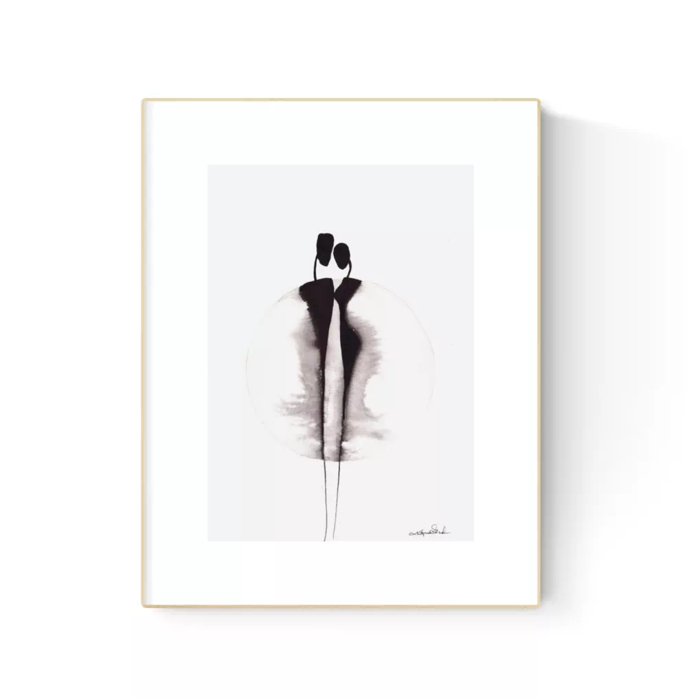 Oryginalne grafiki artystyczne, wykonane ręcznie tuszem na tradycyjnym papierze akwarelowym z tłoczoną pieczęcią artystki. Unikatowe - technika nanoszenia tuszu sprawia, że każda z prac jest niepowtarzalna. Jakość papieru i jego faktura podkreślają oryginalność ręcznego wykonania grafik.