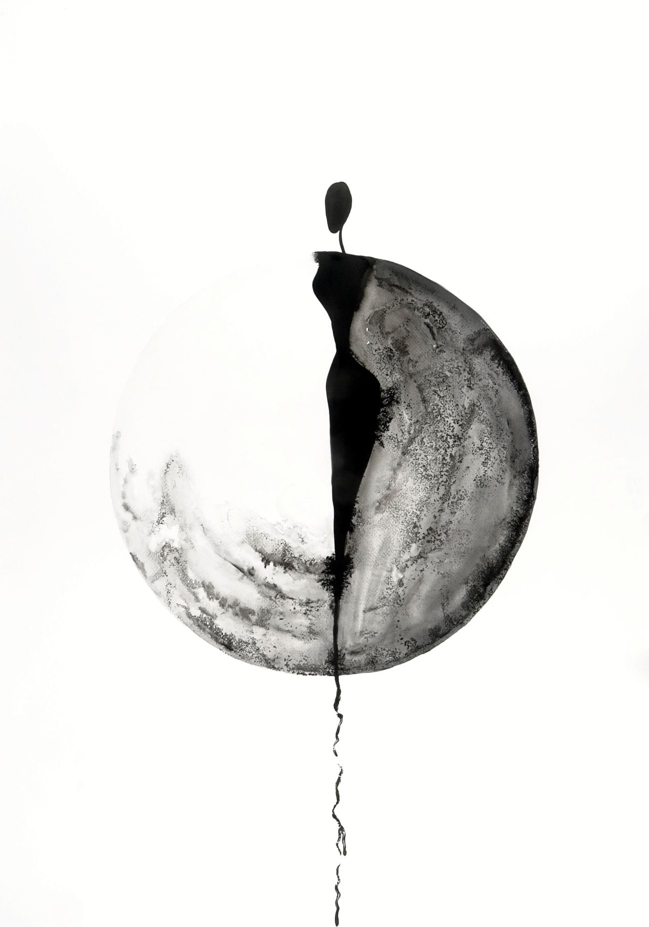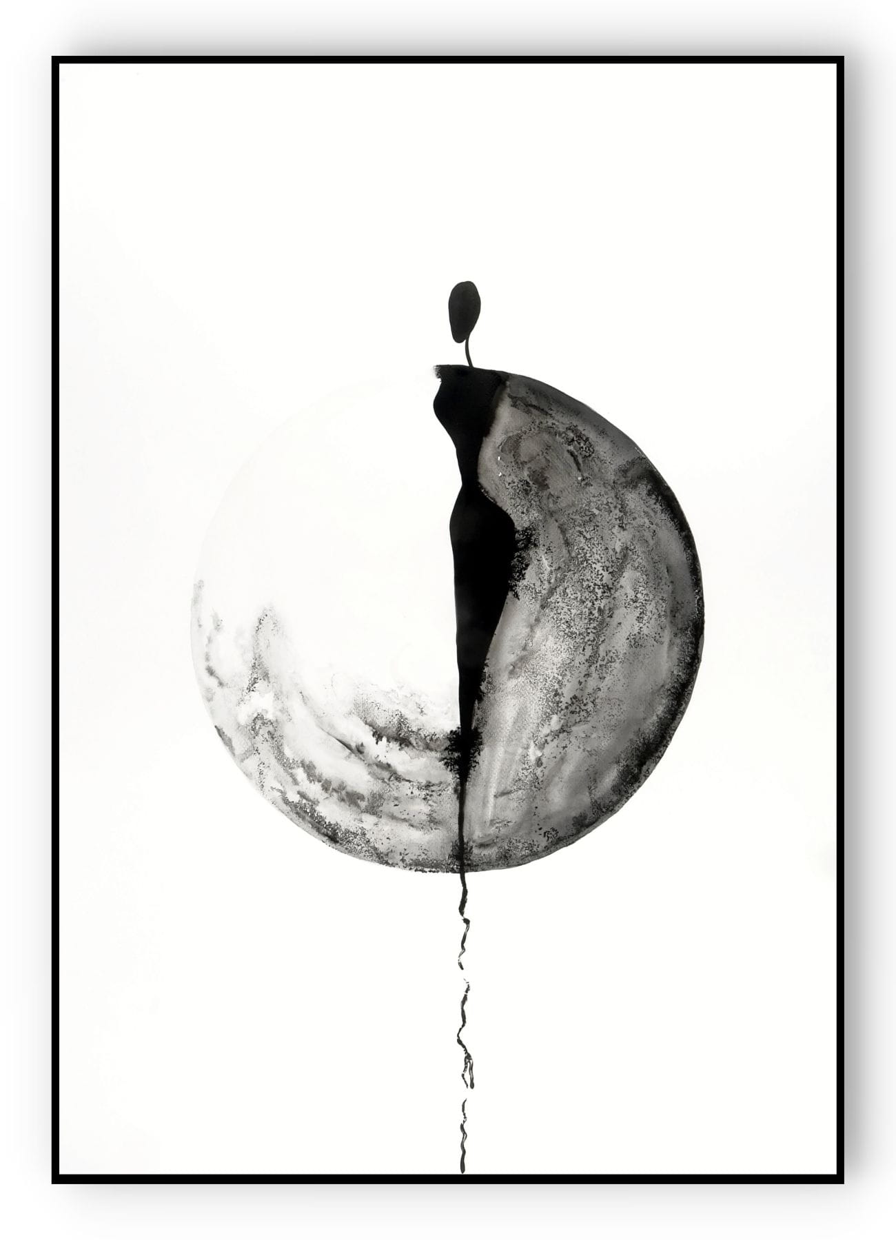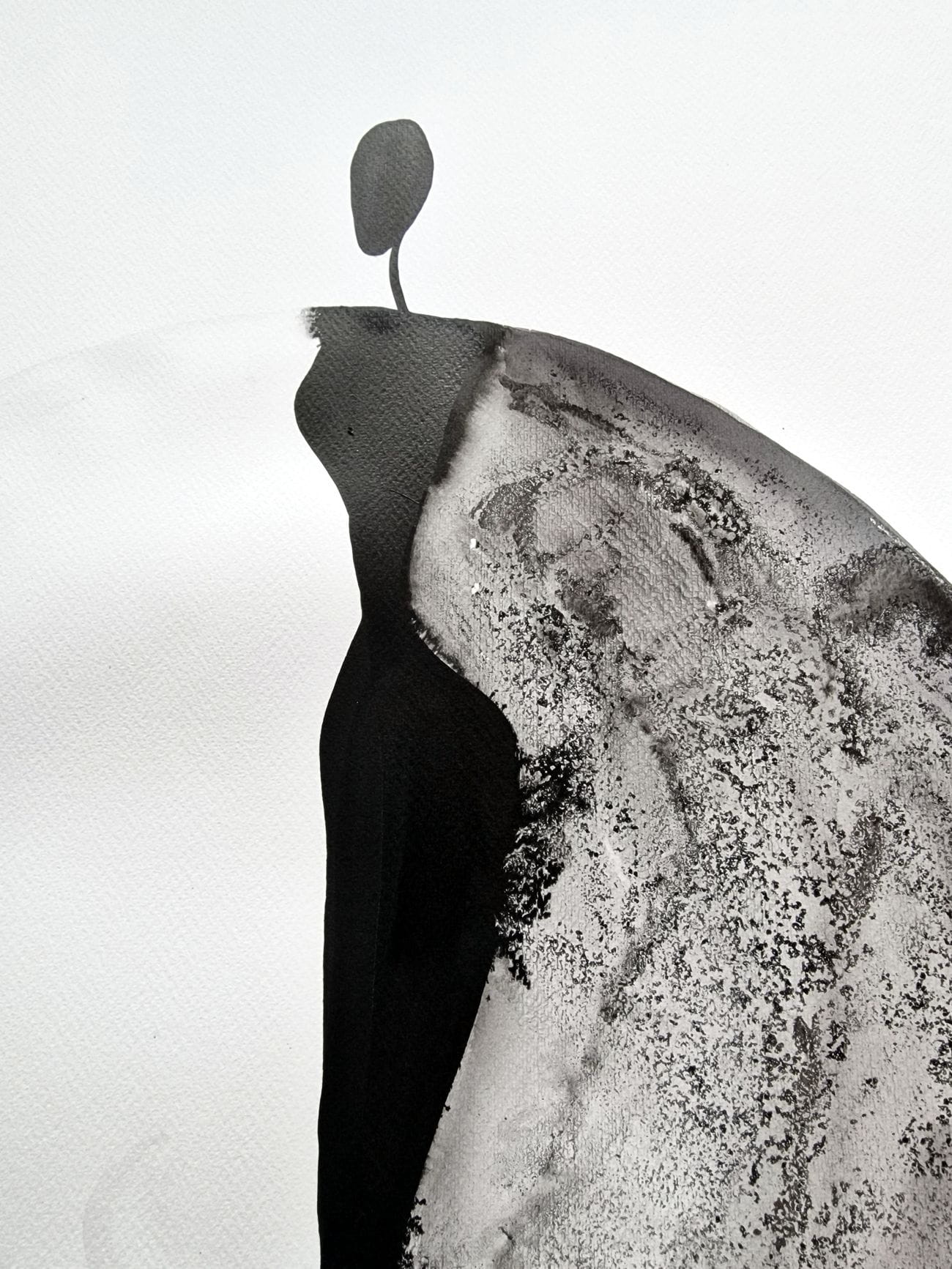Wyjątkowa kolekcja dużych grafik abstrakcyjnych do salonu i dużych przestrzeni. Ten delikatny obraz namalowany ręcznie tuszem oddaje ulotną chwilę. Ten abstrakcyjny obraz tuszem przedstawia zarys kamiennych form, które przywodzą na myśl ludzkie sylwetki. Zróżnicowane odcienie czerni i szarości wyróżniają postać, sugerując jej unikalną osobowość i siłę, mimo że pozostają one zredukowane do prostych, organicznych kształtów. Tekstury tuszu oddają naturalne pęknięcia i nierówności powierzchni, nadając każdej formie głębię i charakter.