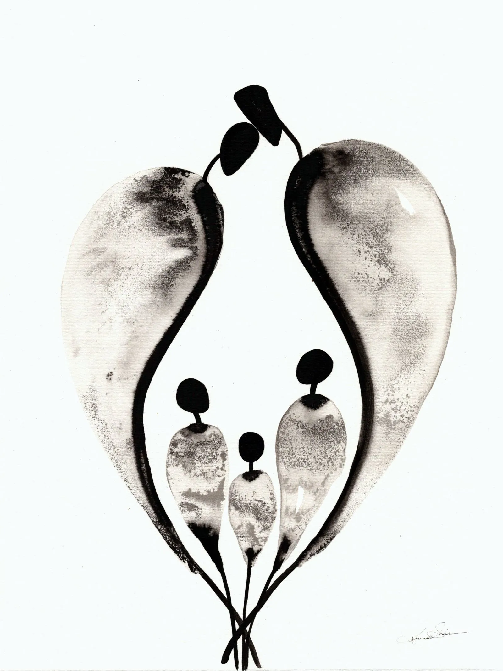Rysunki zostały wykonane ręcznie tuszem na tradycyjnym papierze akwarelowym z tłoczoną pieczęcią. Unikatowe - technika nanoszenia tuszu sprawia, że każda z prac jest niepowtarzalna. Jakość papieru i jego faktura podkreślają oryginalność ręcznie wykonanej pracy.