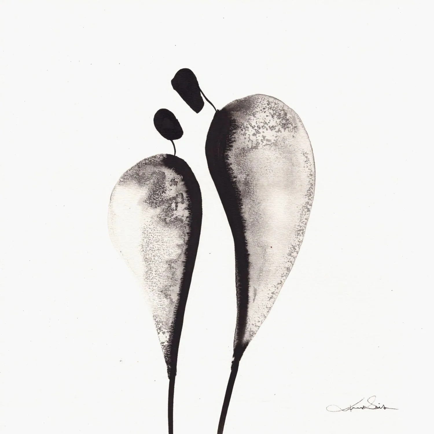 Eleganckie grafiki artystyczne, wykonane ręcznie tuszem na tradycyjnym papierze akwarelowym z tłoczoną pieczęcią artystki. Unikatowe - technika nanoszenia tuszu sprawia, że każda z prac jest niepowtarzalna. Jakość papieru i jego faktura podkreślają oryginalność ręcznego wykonania grafik.