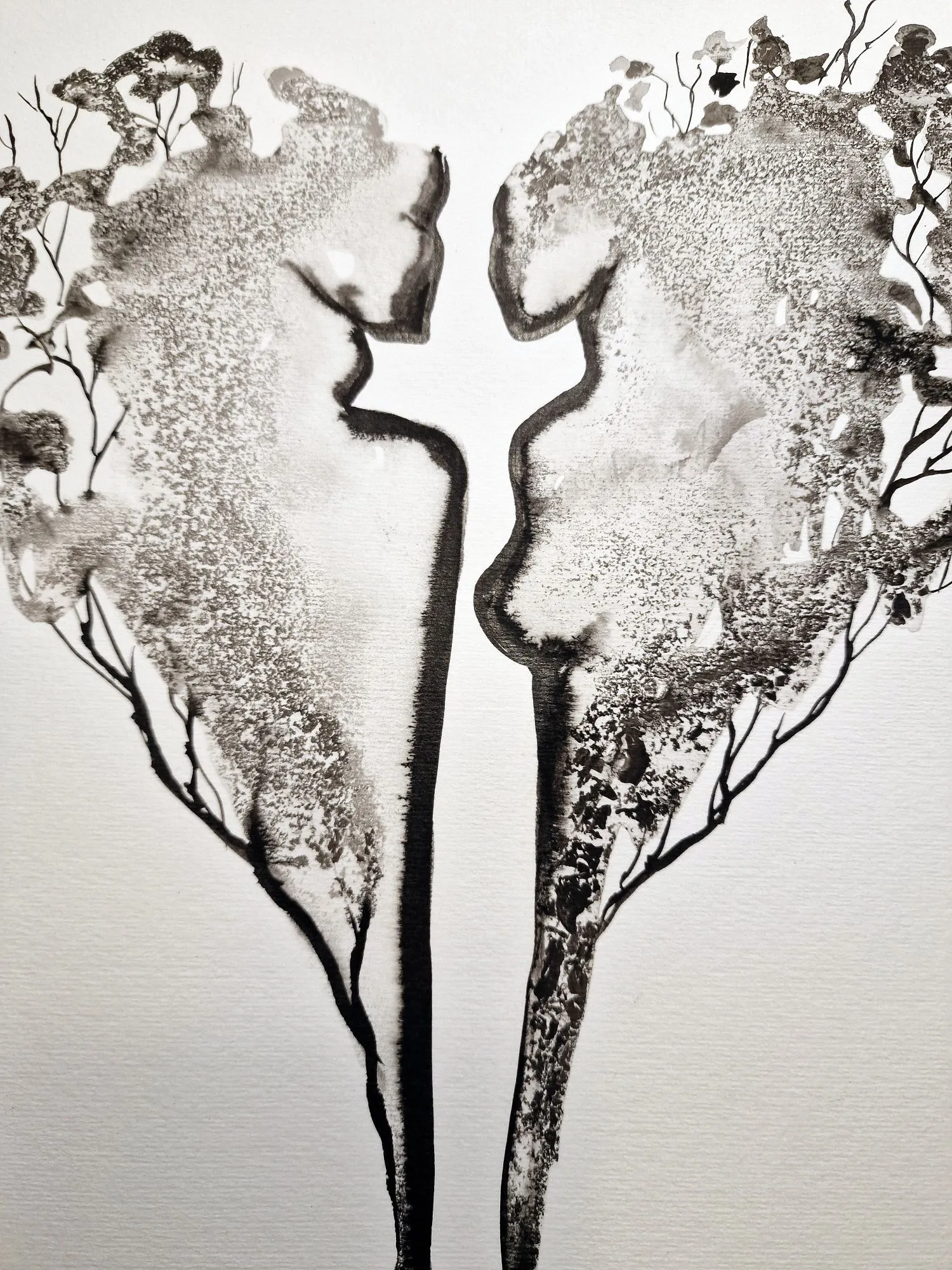 Eleganckie grafiki artystyczne, wykonane ręcznie tuszem na tradycyjnym papierze akwarelowym z tłoczoną pieczęcią artystki. Unikatowe - technika nanoszenia tuszu sprawia, że każda z prac jest niepowtarzalna. Jakość papieru i jego faktura podkreślają oryginalność ręcznego wykonania grafik.