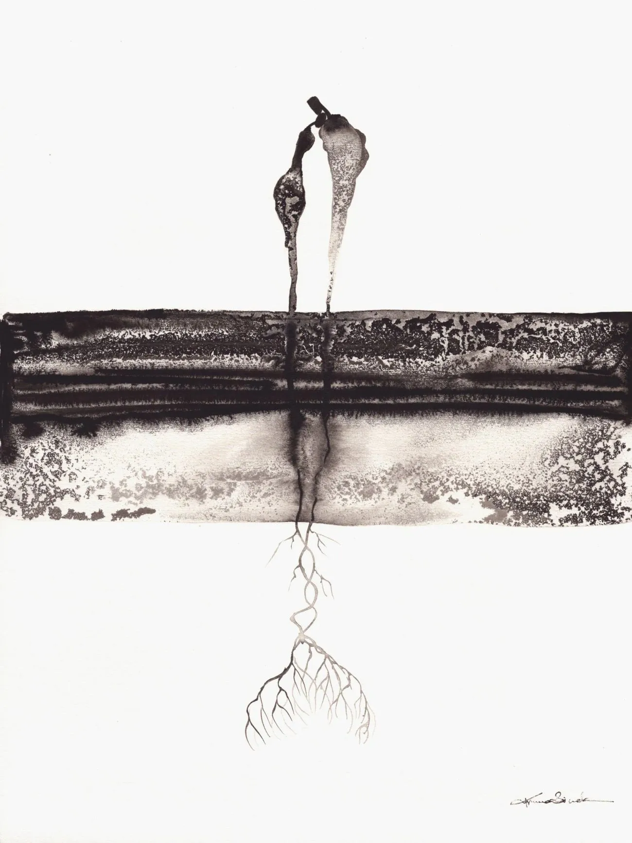 Praca została wykonana w autorskiej technice z użyciem tuszy.