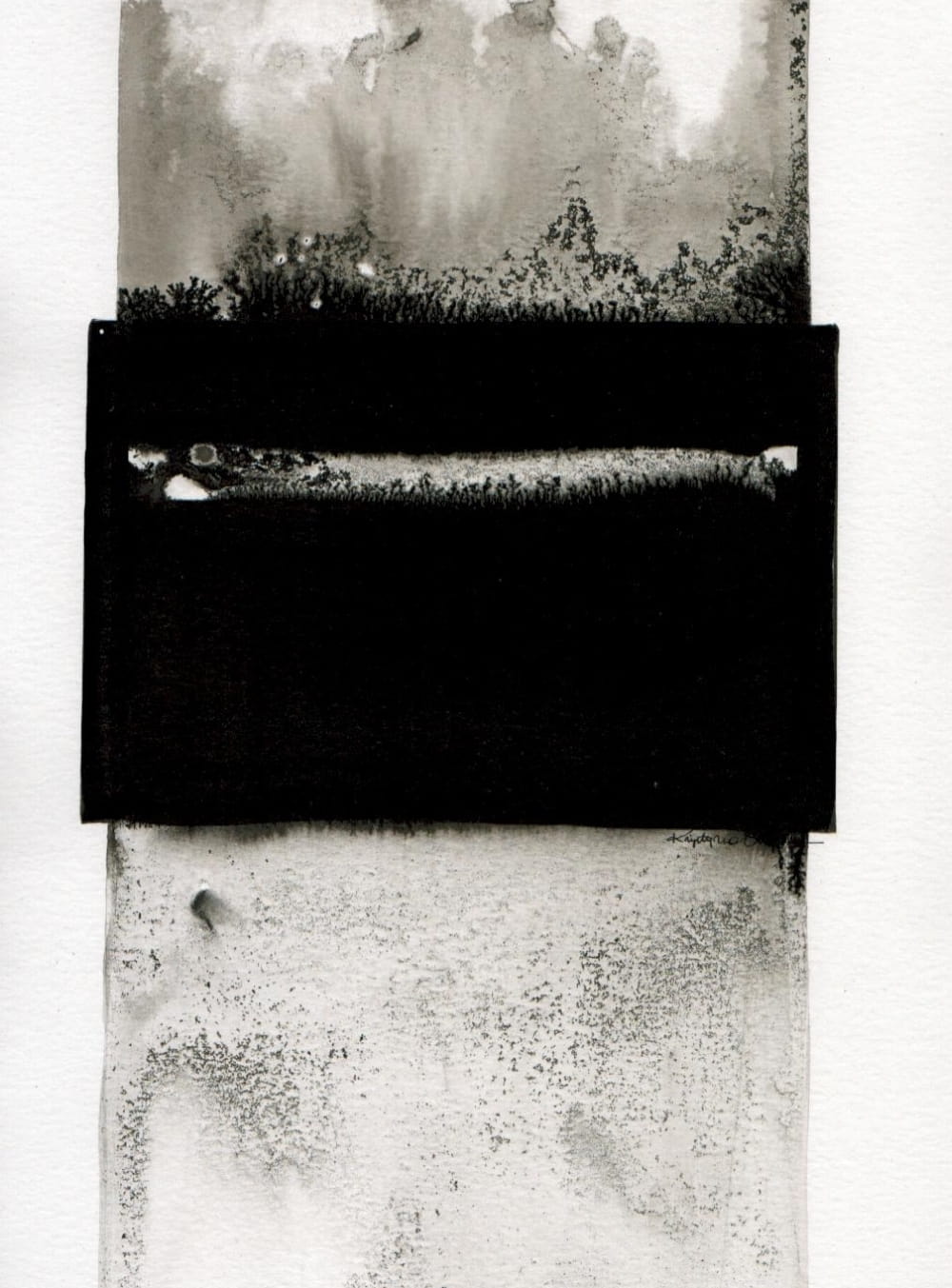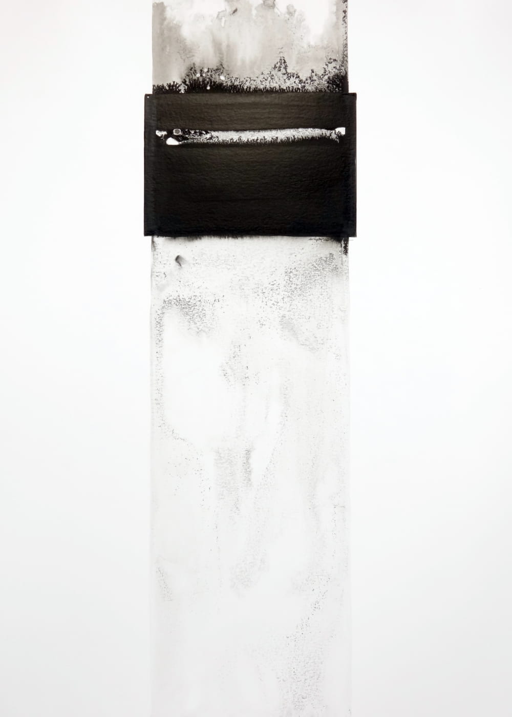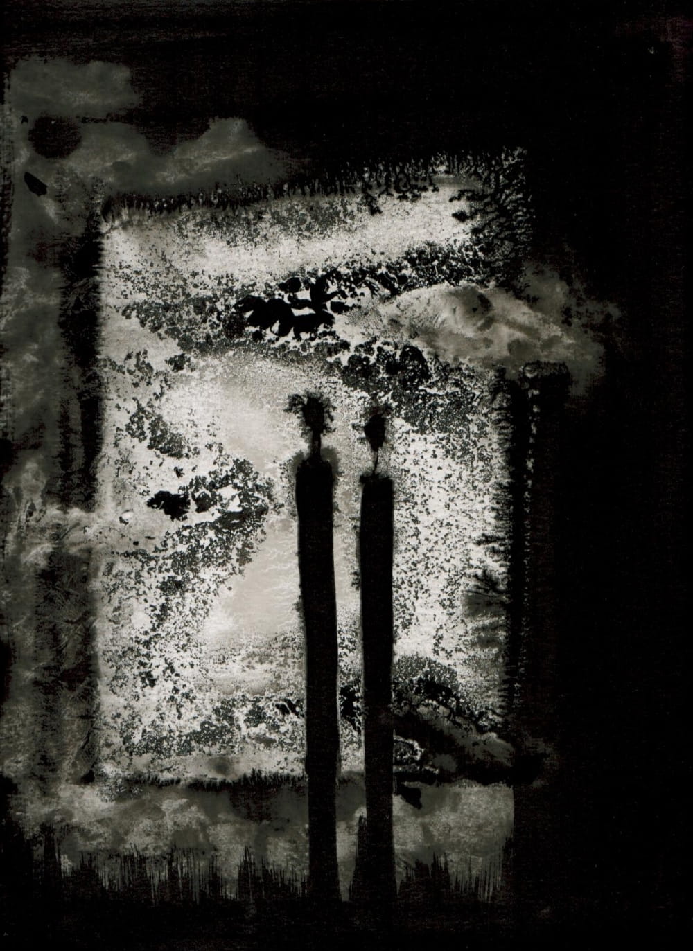 Obrazy ręcznie malowane tuszem na tradycyjnym papierze akwarelowym o gładkiej fakturze, która dodatkowo podkreśla subtelne przejścia pomiędzy czernią i bielą.