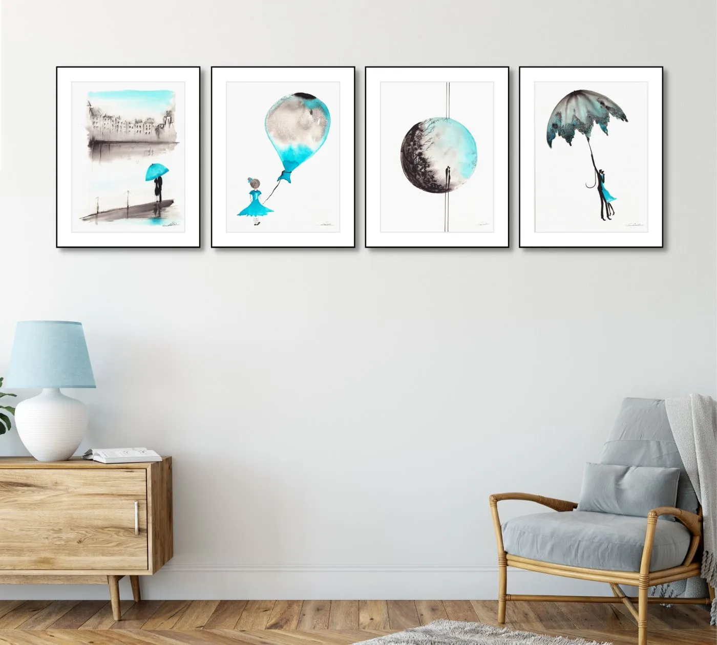 Grafiki można swobodnie łączyć w zestawy, wybierając zarówno grafiki z jednego lub kilku cykli. Unikatowość grafik i akwareli dedykowanych na ścianę do salonu, jadalni pozwalają stworzyć zestaw, który może opowiadać twoją historię, inspirować i przywoływać uśmiech. Dodatkowo oryginalne grafiki podkreślą indywidualny charakter twojej przestrzeni. Sztuka jest duszą wnętrz, odzwierciedleniem emocjonalności właściciela, potwierdzeniem zamiłowanie do rzeczy pięknych i kunsztownie wykonanych.