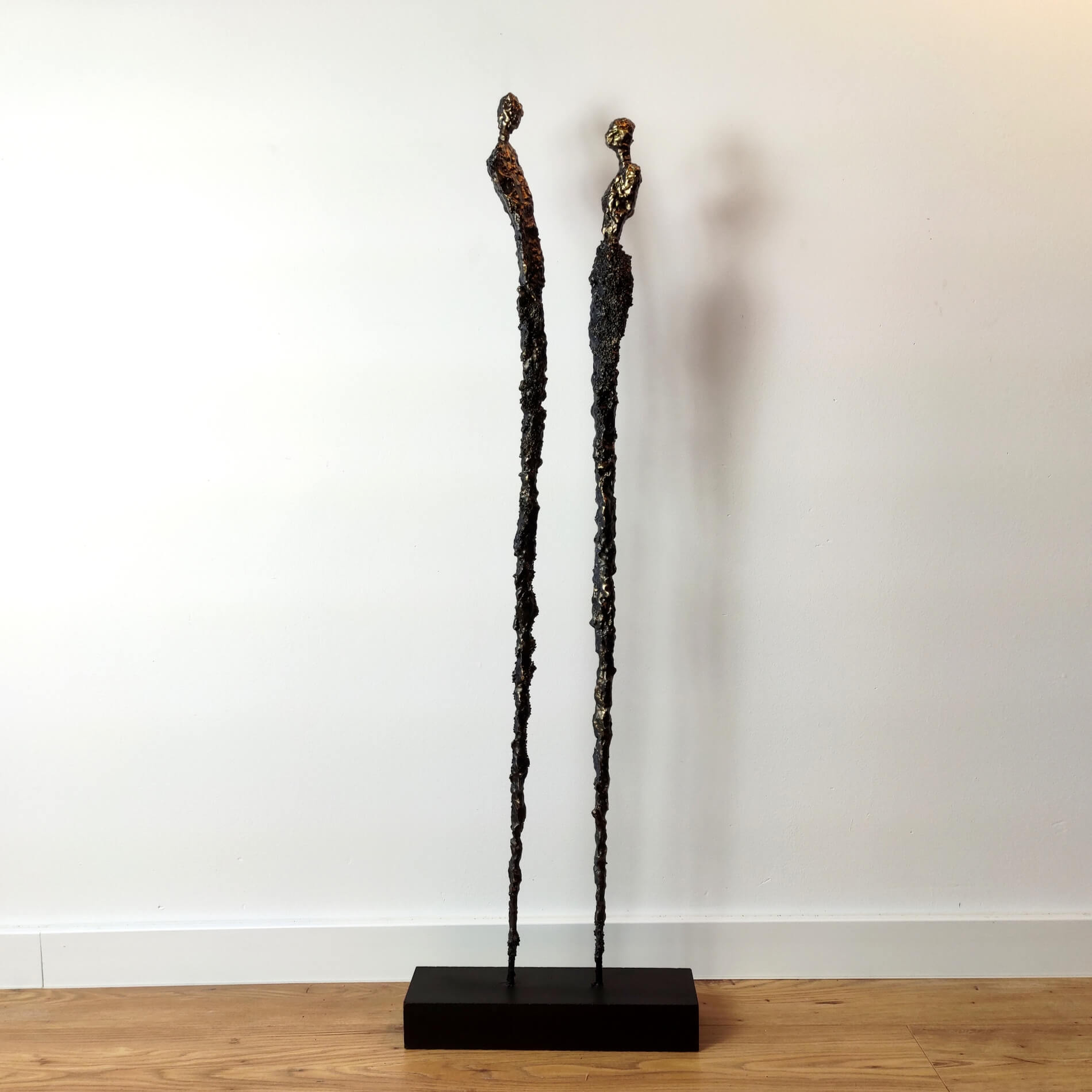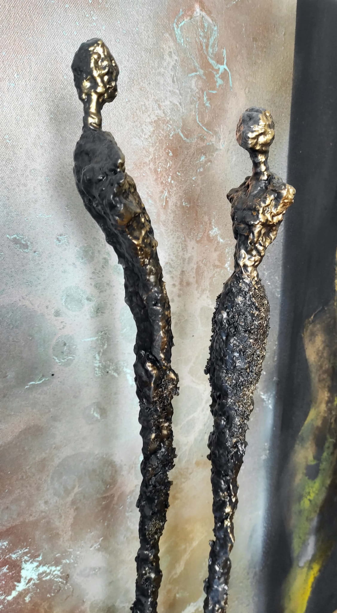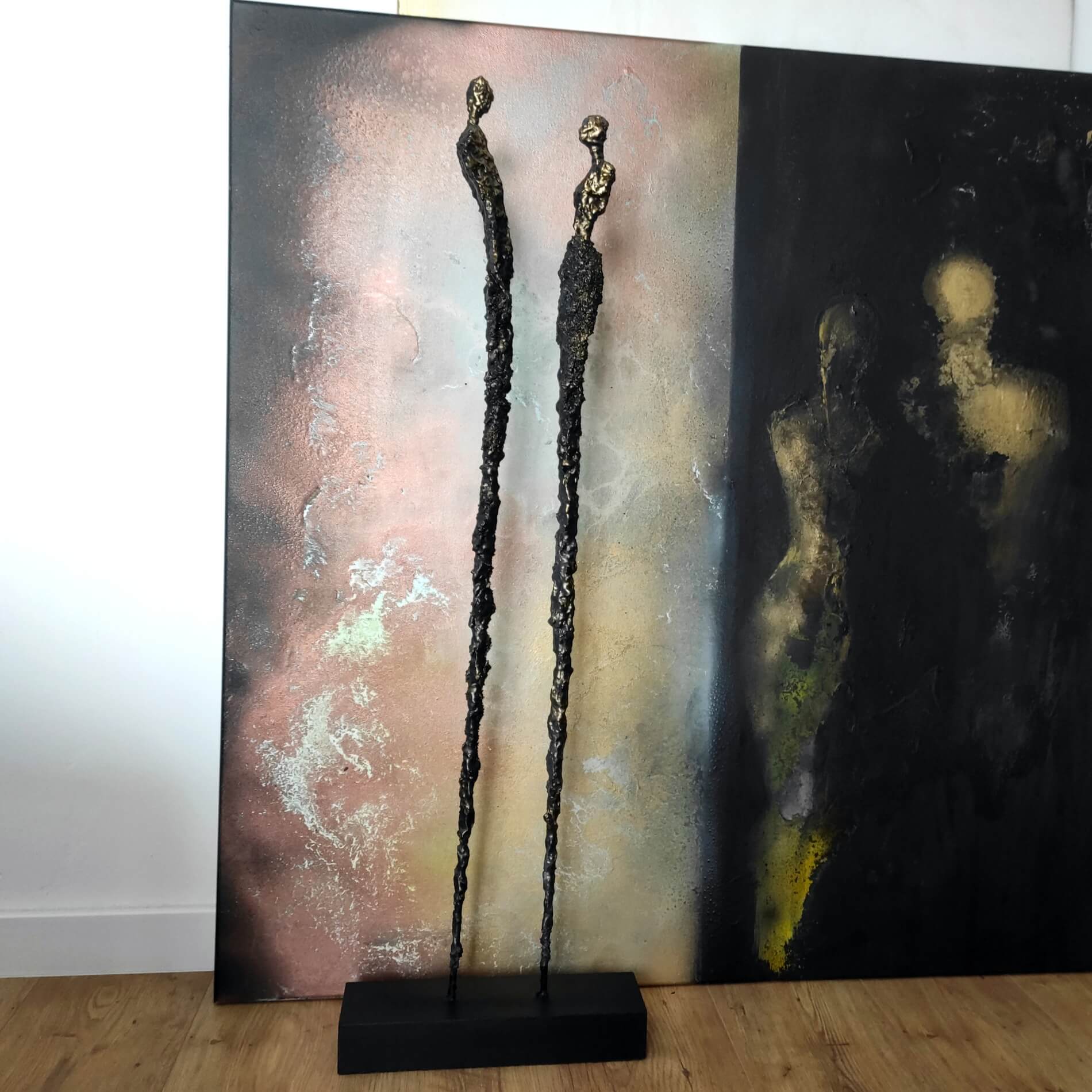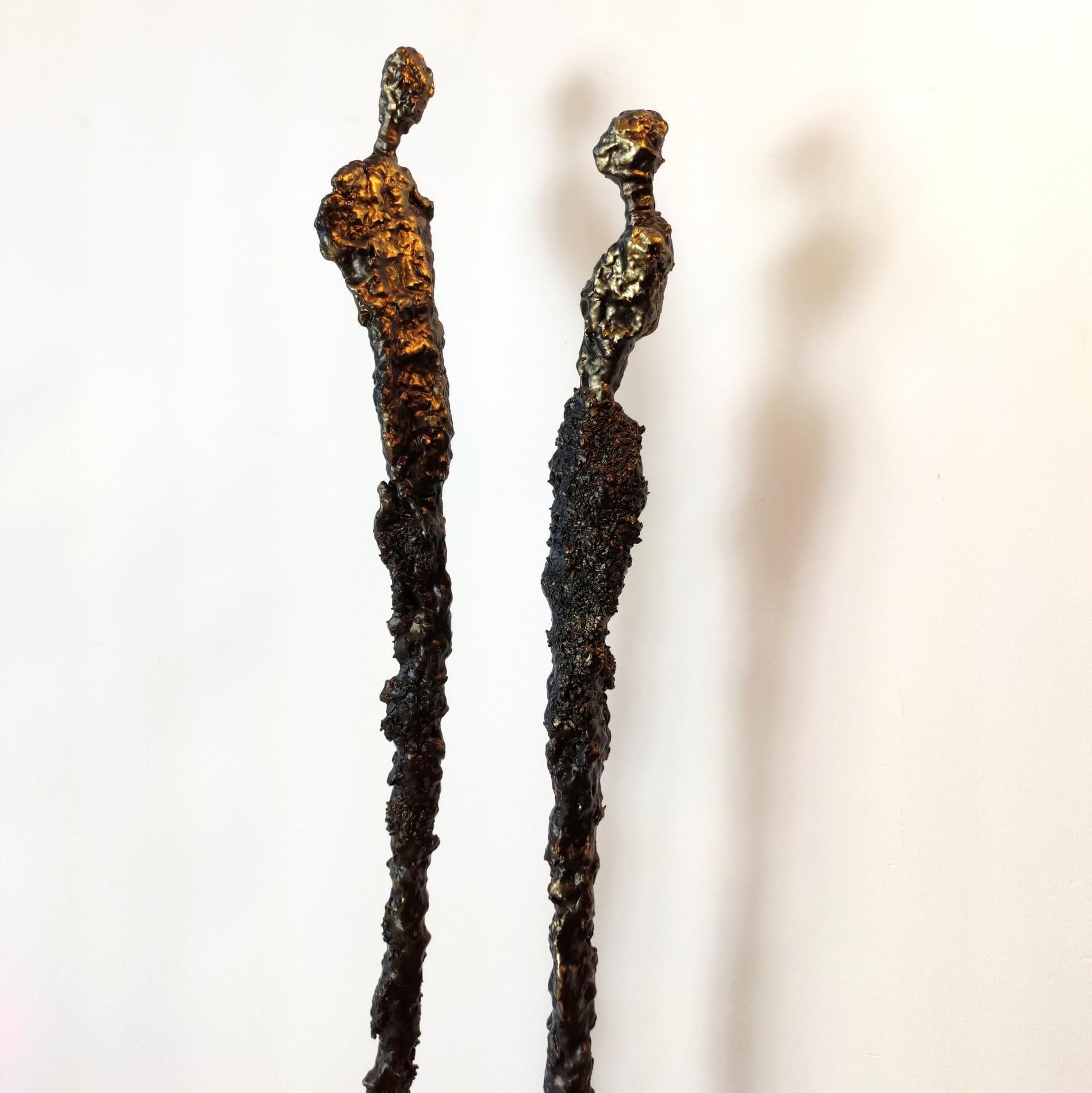 Rzeźba duża figurka ze stali i gliny para, zamyślenie