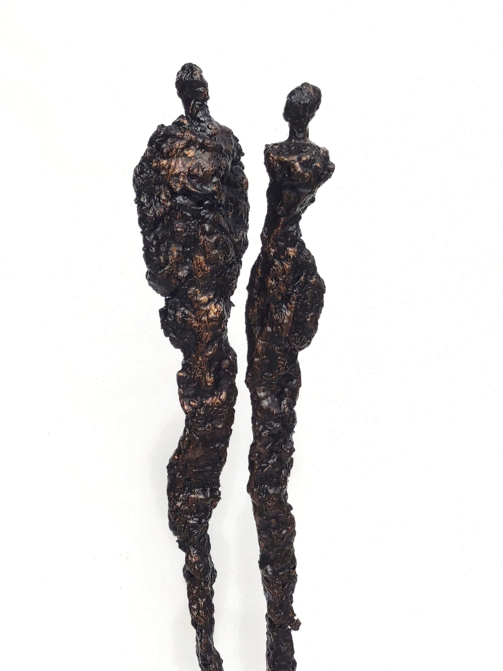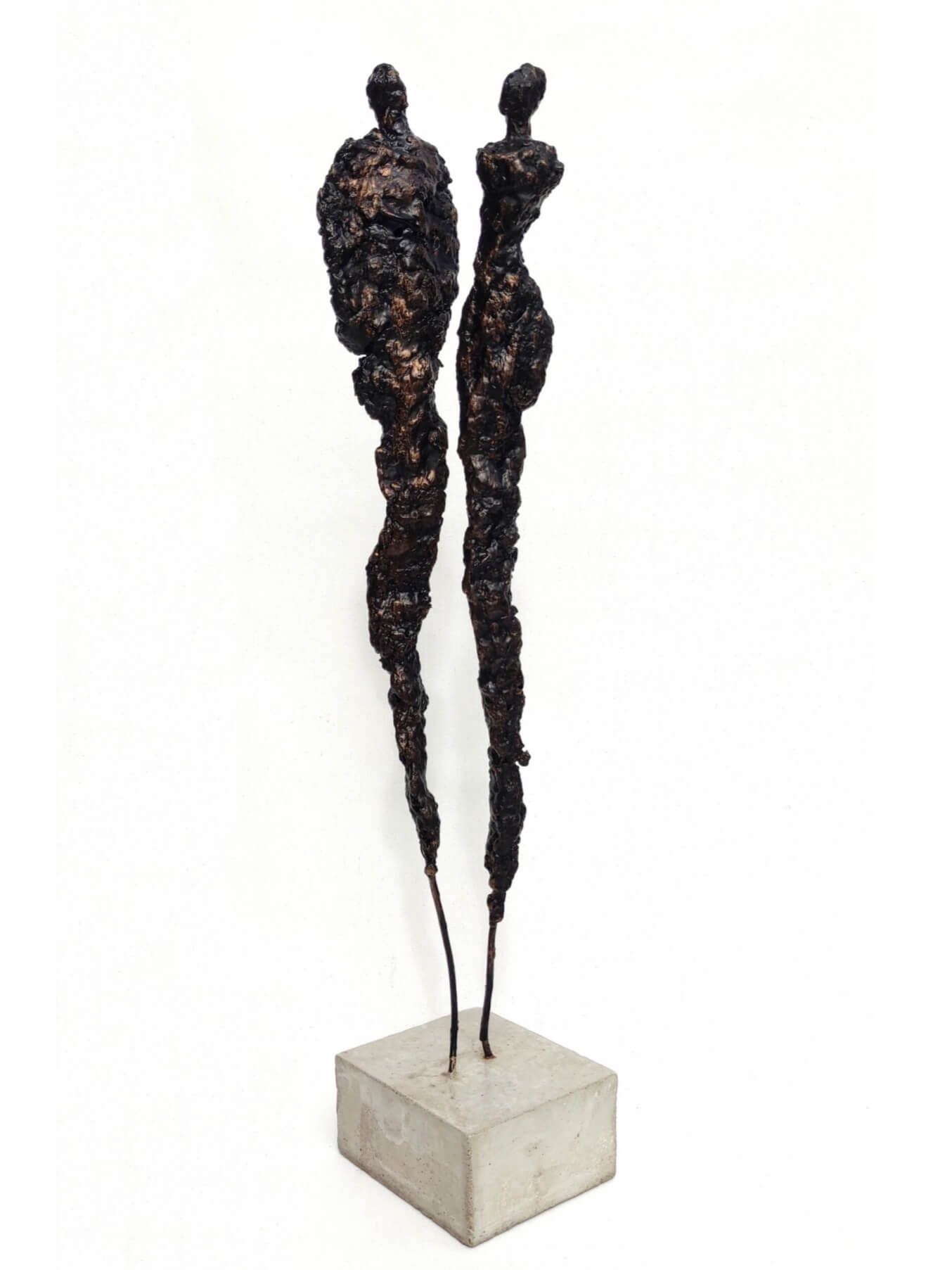 Rzeźba nowoczesna ze stali, gliny i betonu, postacie stojące