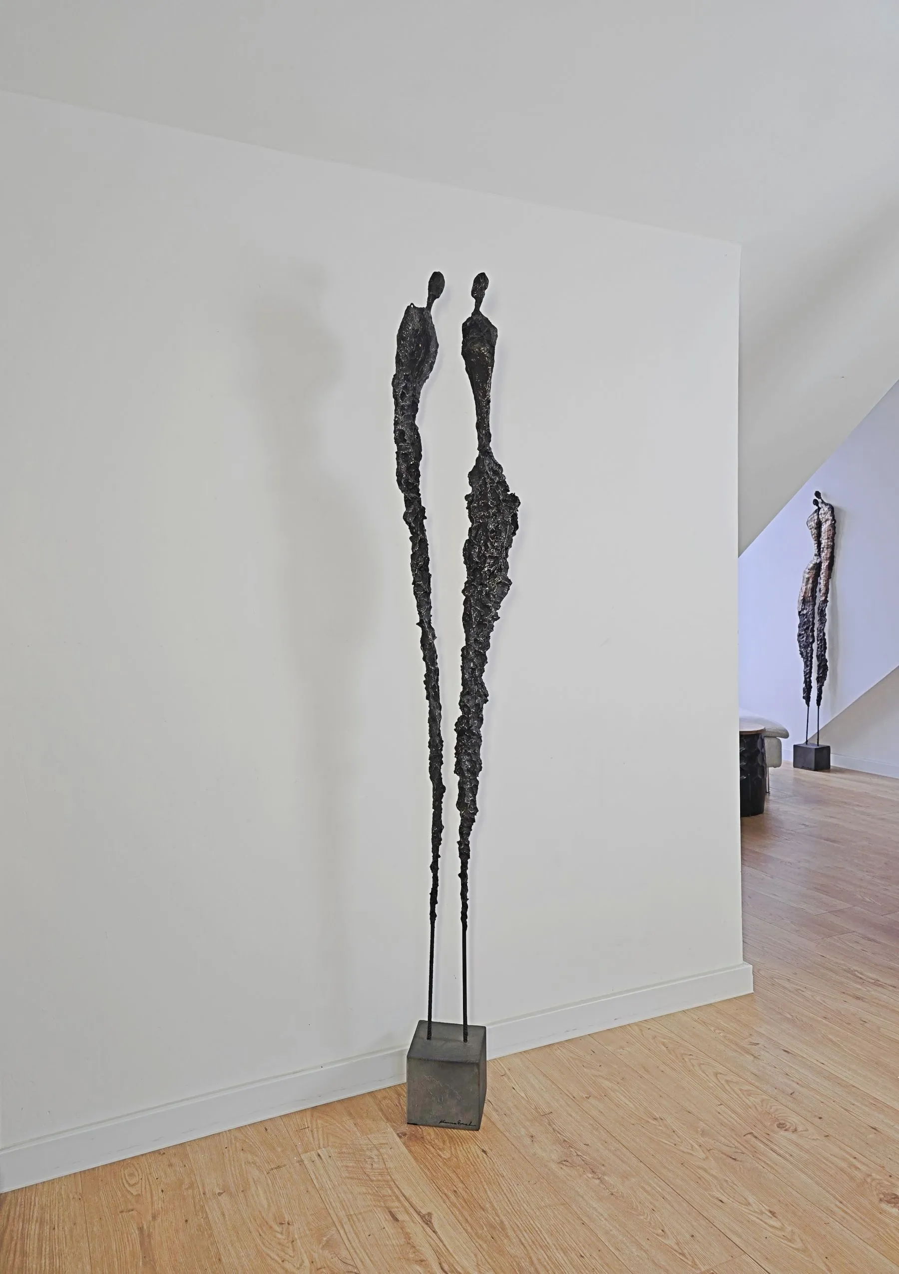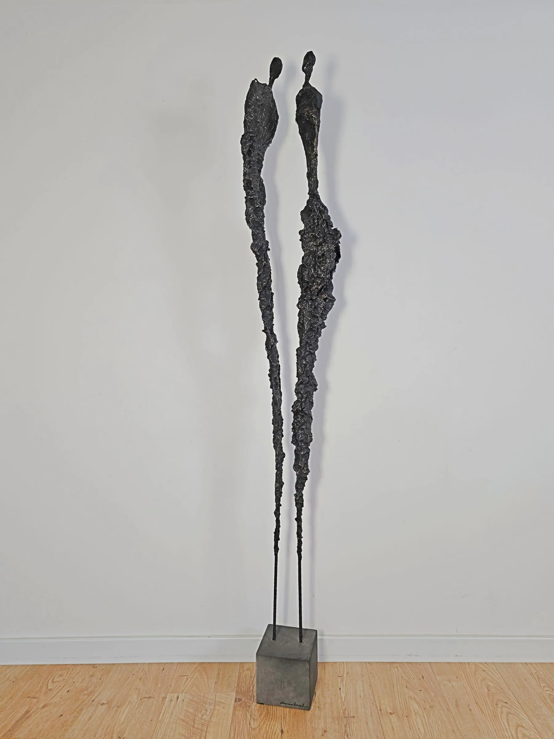 Rzeźba z cyklu Sploty emanuje lekkością mimo swojej surowej, metalicznej formy, ukazując subtelne napięcie między kruchością a siłą. Organiczna struktura. To forma, która zaprasza do kontemplacji relacji, rytmu i przestrzeni, pozostawiając miejsce na indywidualny odbiór.