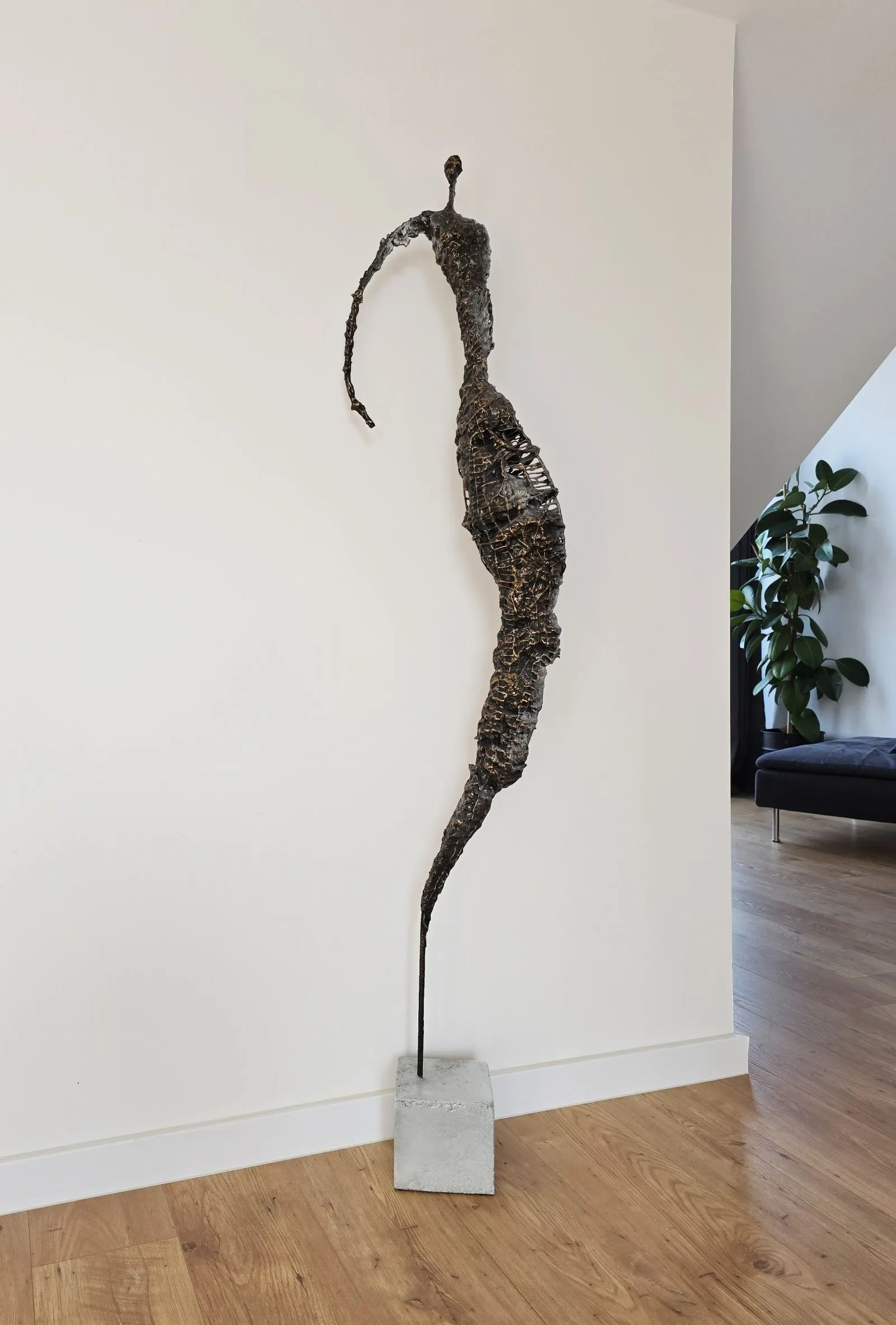 Idealna do nowoczesnego salonu lub gabinetu, ta rzeźba abstrakcyjna jest nie tylko dekoracją, ale także odzwierciedleniem współczesnych trendów w sztuce. Jej forma i design podkreślą charakter każdego wnętrza, dodając mu wyrafinowania i głębi. To nie tylko rzeźba, to opowieść o emocjach i formach, które łączą nas wszystkich.