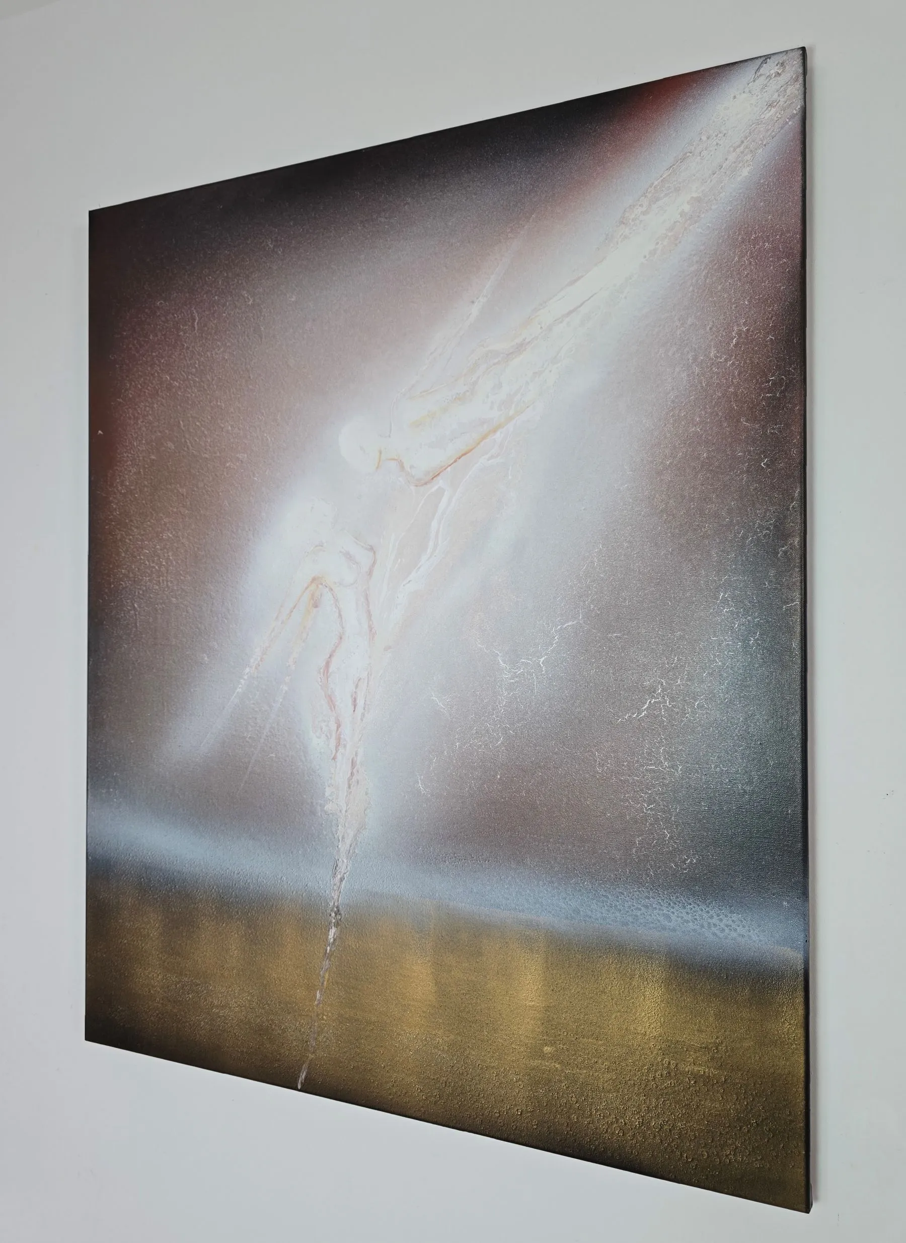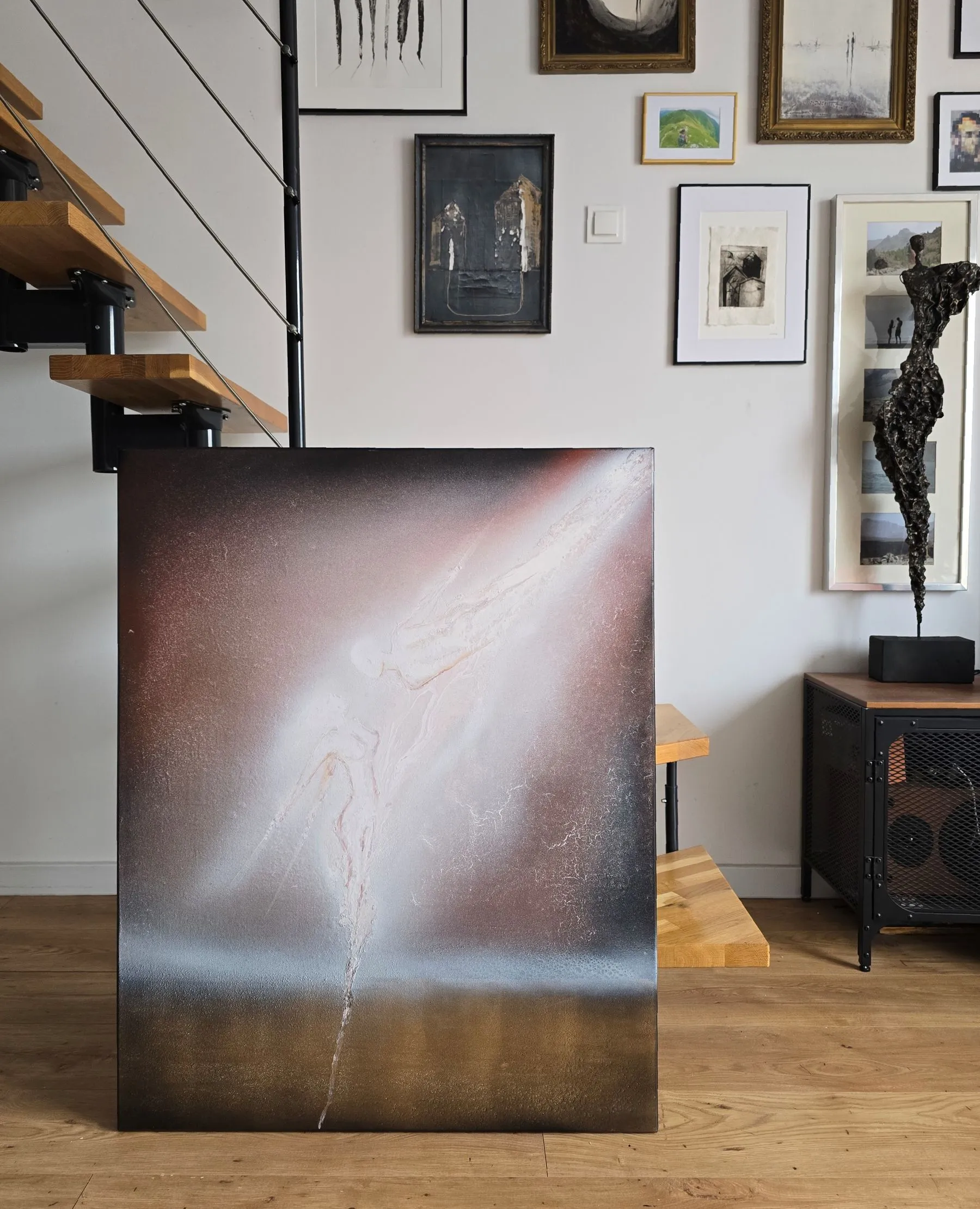 Kompozycja, zbudowana na kontrastach światła i cienia, oddaje potęgę pierwotnych mocy – ognia, powietrza, ziemi i wody – splecionych w jedno. To metaforyczna opowieść o harmonii i napięciu między naturą a człowiekiem, o nieustannym ruchu i przenikaniu się energii, które kształtują życie.